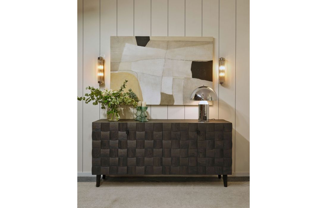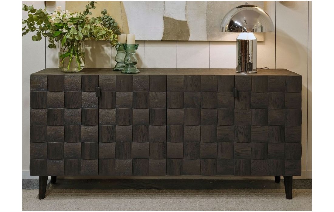 O APARADOR KIEL em carvalho é uma peça de design sofisticada que se destaca por suas portas em relevo, formando um elegante mosaico de quadrados em madeira. Seu estilo único e refinado é perfeito para trazer caráter para qualquer espaço. Além disso, possui uma prateleira interior que oferece armazenamento funcional e organizado.Destinatário :