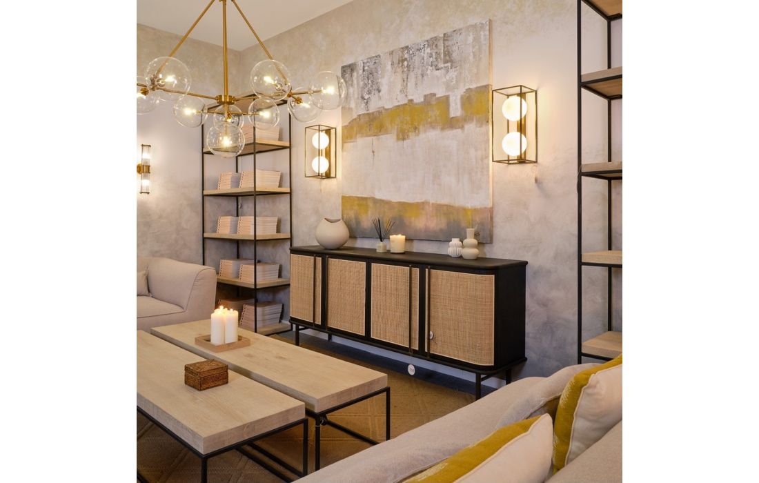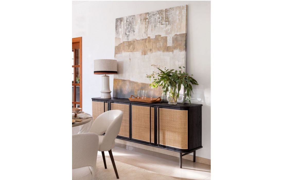 O APARADOR KRON em madeira de carvalho. Tem quatro portas dianteiras em tom natural, que traz luminosidade à peça e combina-a num aparador mais original e especial. Pés em metal.Destinatário :