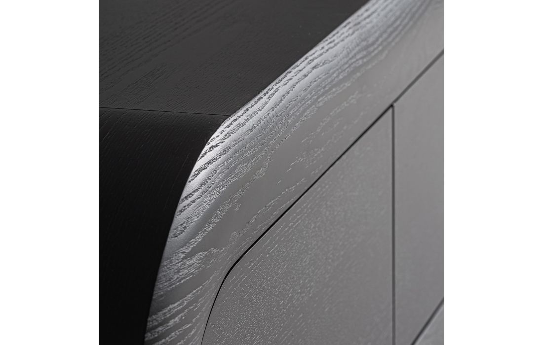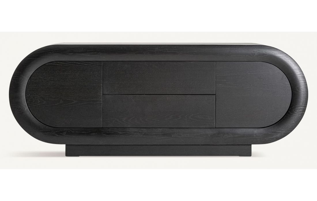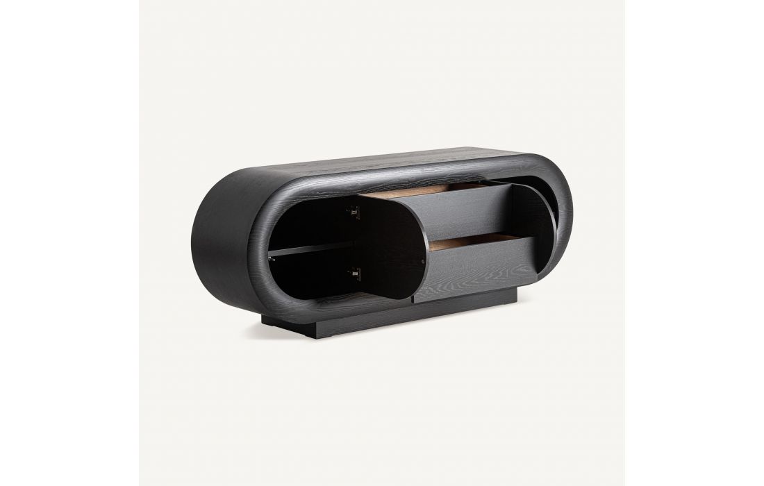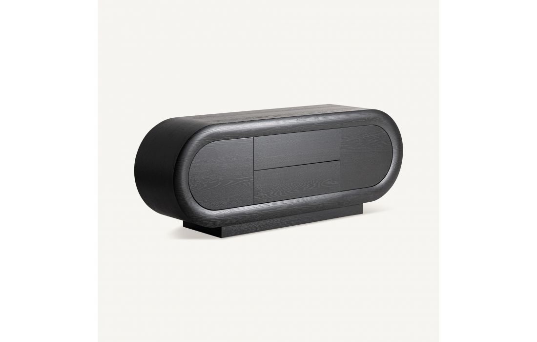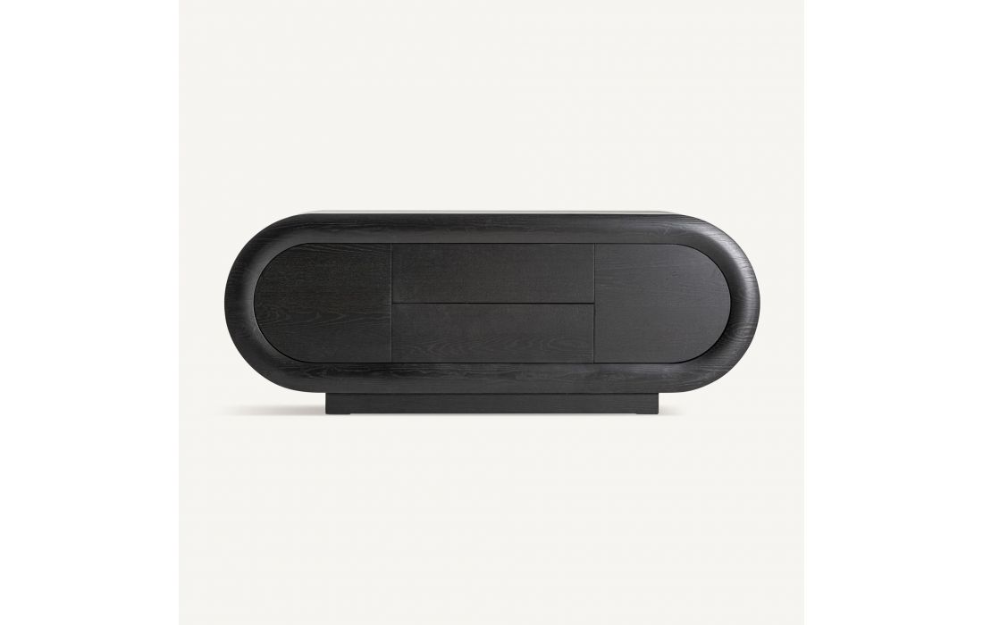 Este aparador destaca-se pelo seu design art déco reinterpretado na chave atual. Sua estrutura de carvalho marrom e preto com formas arredondadas e uma frente refinada que traz elegância para o espaço. Uma peça funcional e distinta.Destinatário :