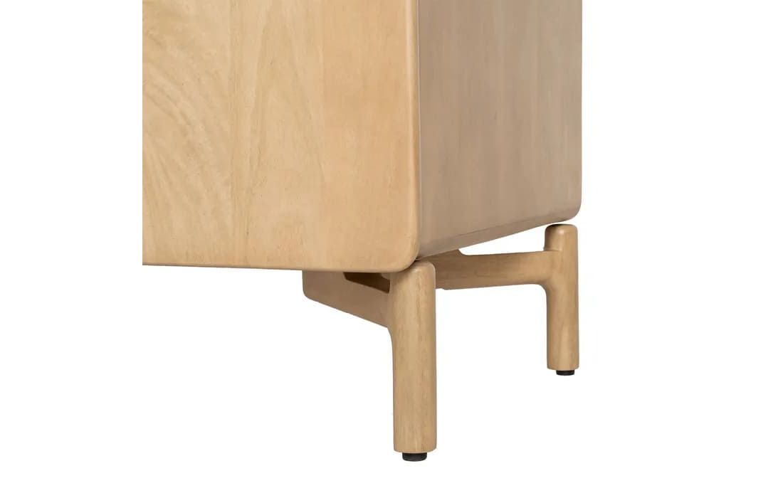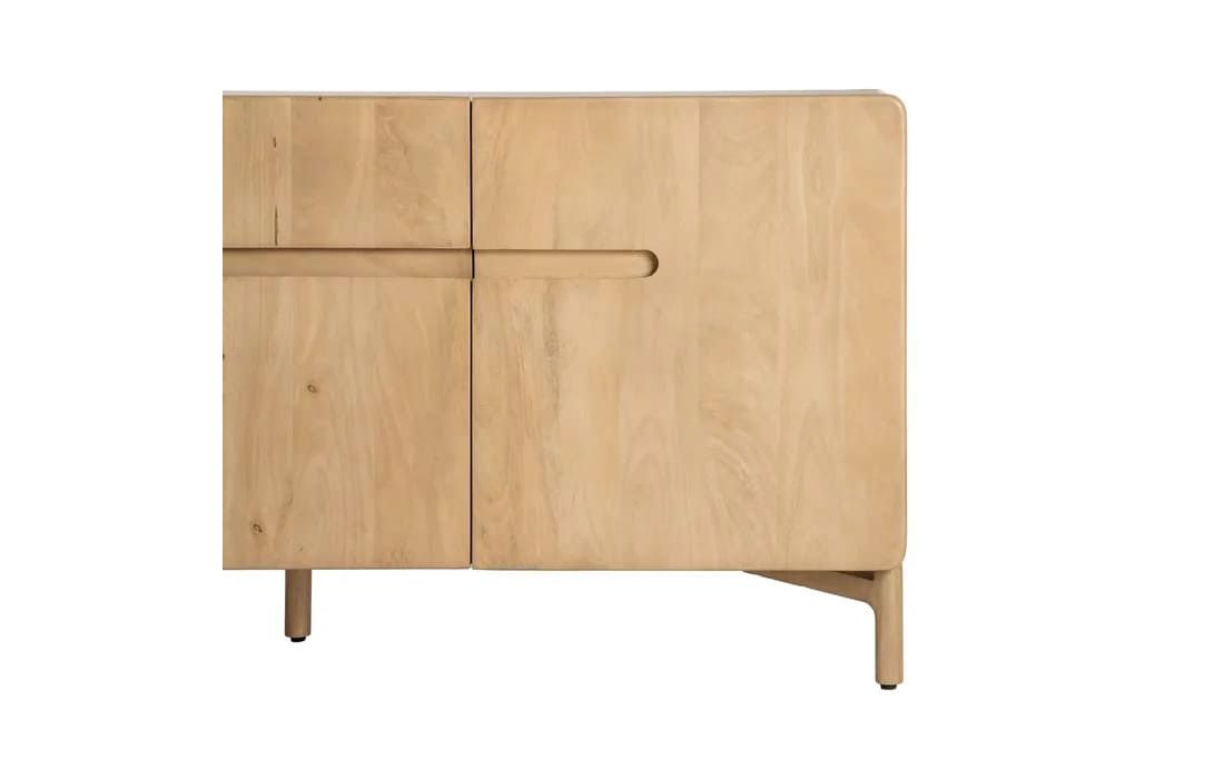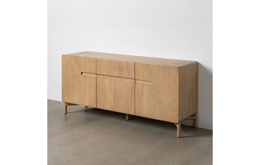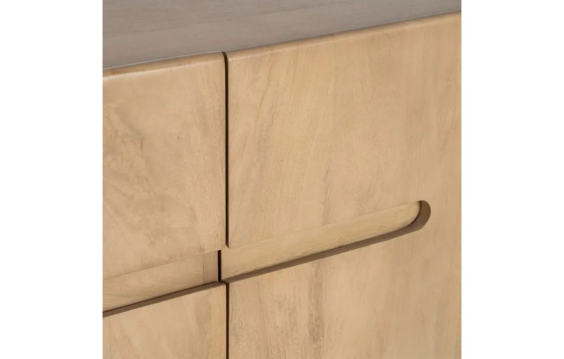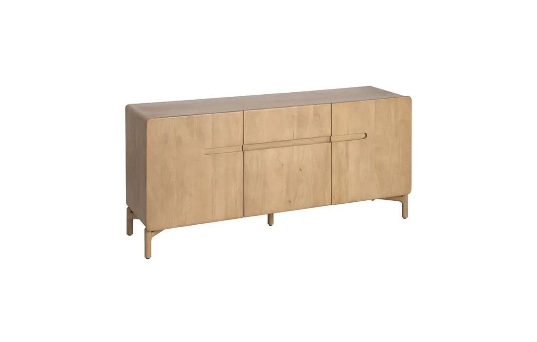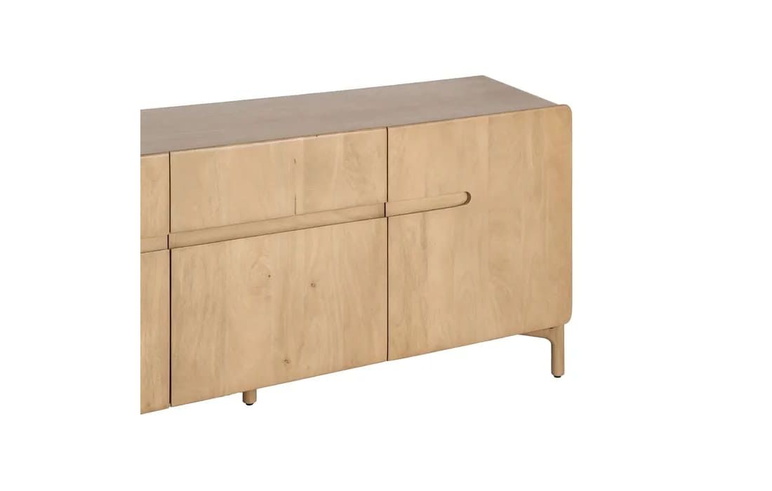 Este aparador destaca-se pelo seu design minimalista e linhas suaves, ideal para ambientes modernos e acolhedores. Produzido em madeira de mango, apresenta uma tonalidade clara e veios naturais que conferem leveza e autenticidade à peça.Destinatário :