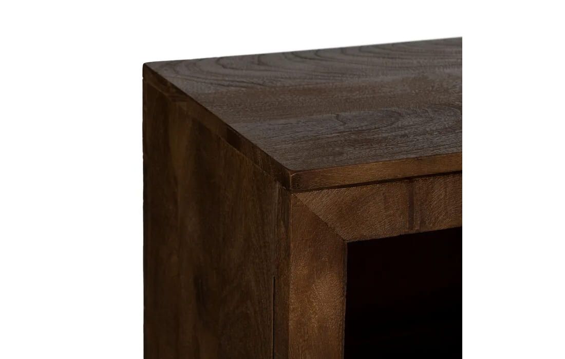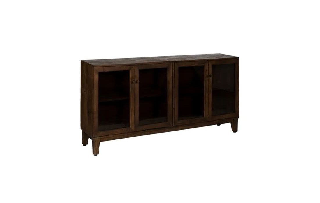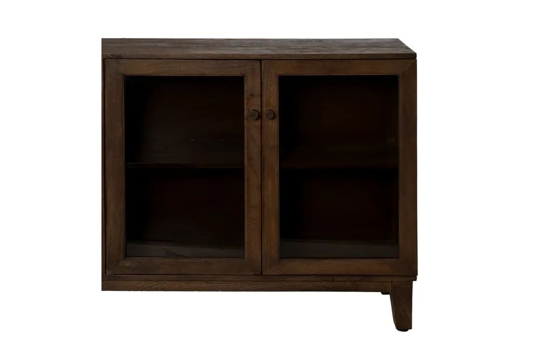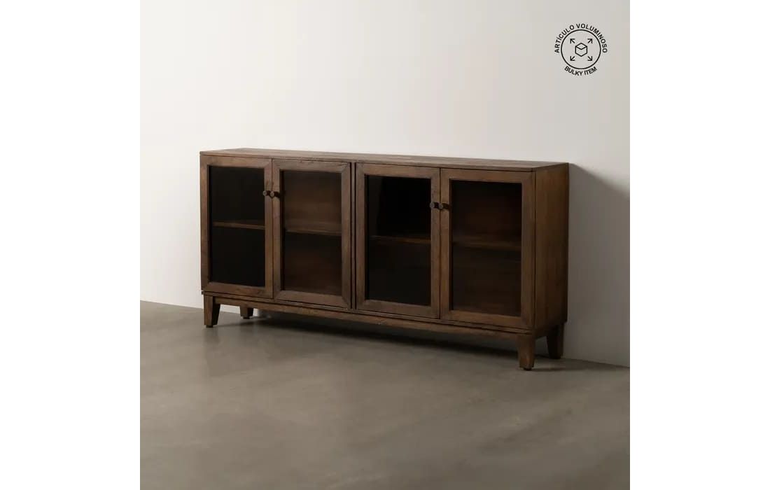 Este aparador combina a robustez da madeira de mango com a leveza e elegância do vidro, criando uma peça equilibrada e contemporânea. Com quatro portas, oferece ampla capacidade de arrumação, permitindo organizar objetos com praticidade enquanto mantém um visual sofisticado.Destinatário :