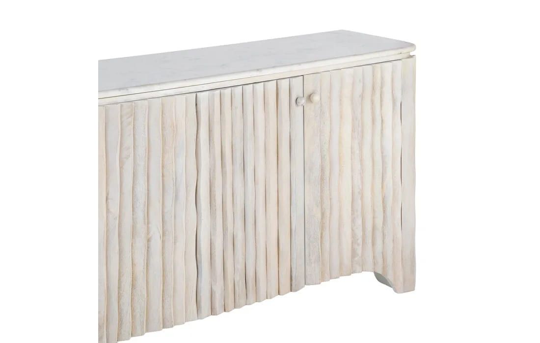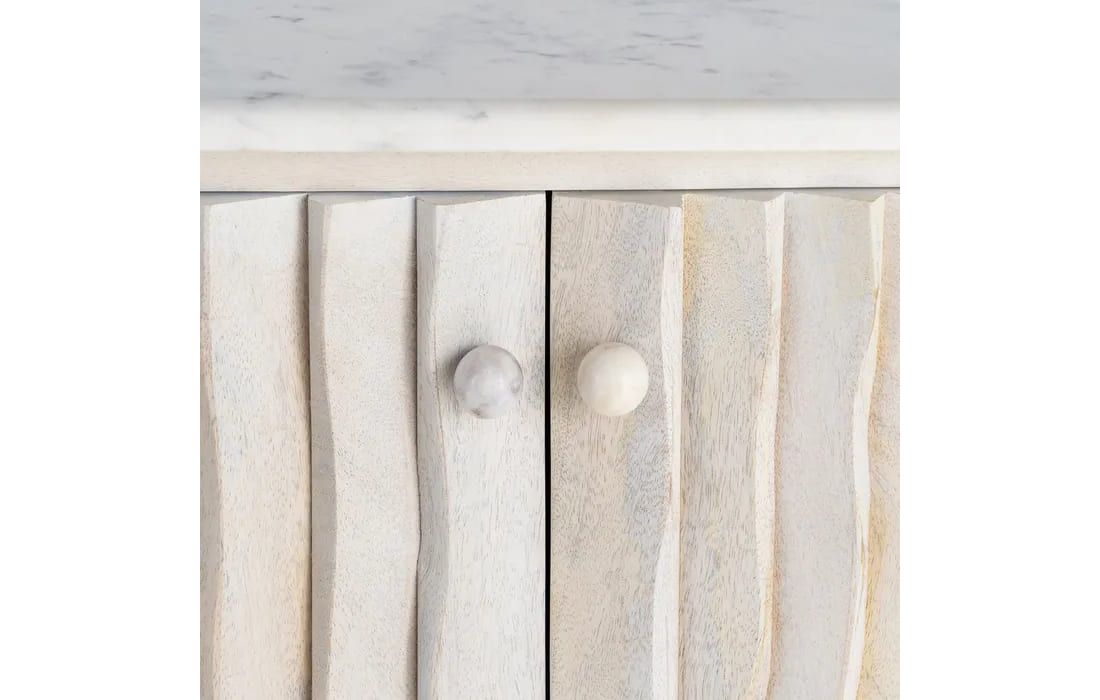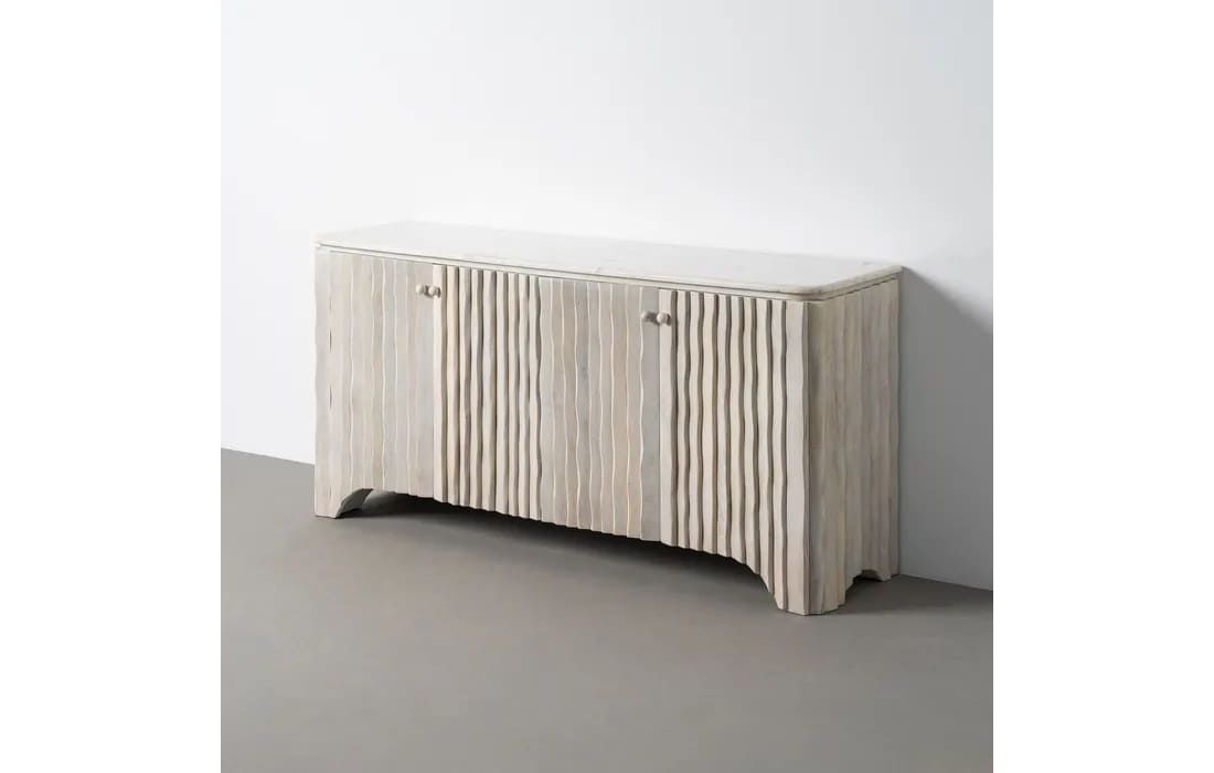 Aparador em madeira de mango com tampo em mármore, elegante e resistente. Combina a beleza natural da madeira com a sofisticação da pedra, oferecendo amplo espaço de arrumação. Ideal para salas modernas que procuram funcionalidade com um toque sofisticado.Destinatário :