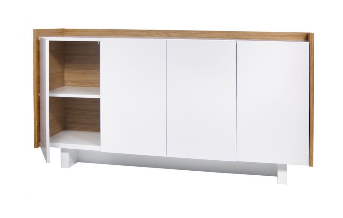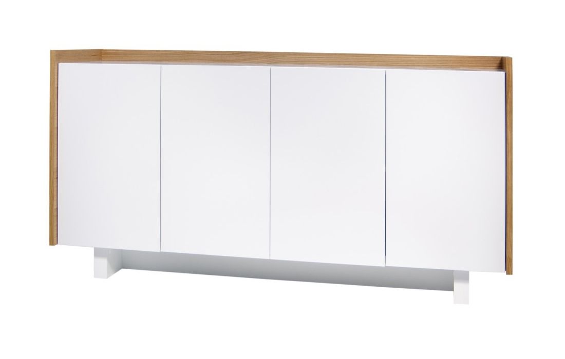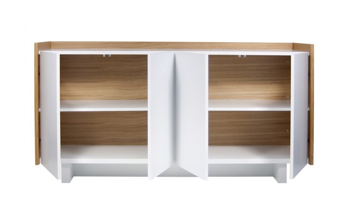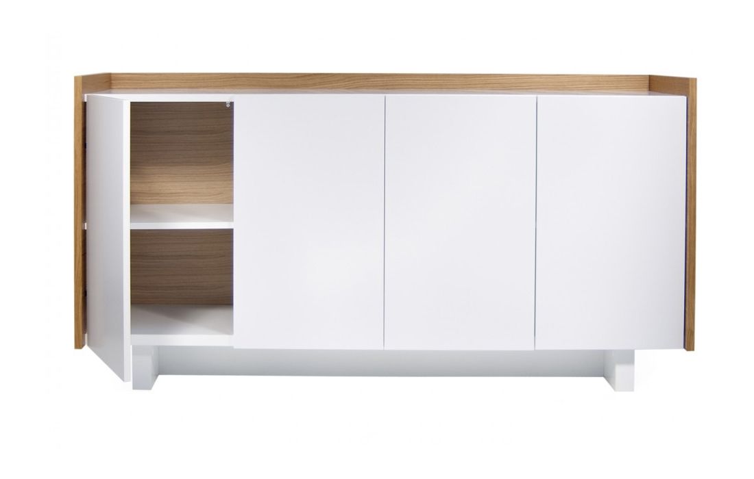 O aparador Niks prima pela simplicidade e pela funcionalidade. O branco das portas e tampo contrasta com o perfil folheado que circunda esta peça, e cobre todo o interior da mesma. Com quatro portas e imenso espaço de arrumação, este módulo é indicado para salas de estar, jantar ou até cozinhas.