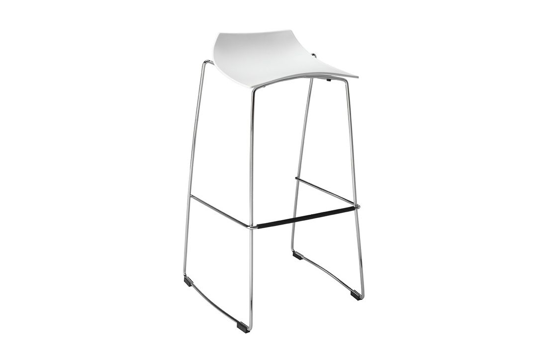 Banco bar moderno, estrutura em metal cromado e assento em abs