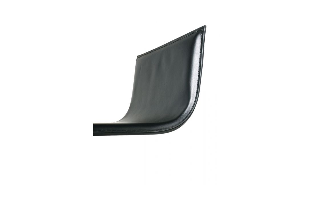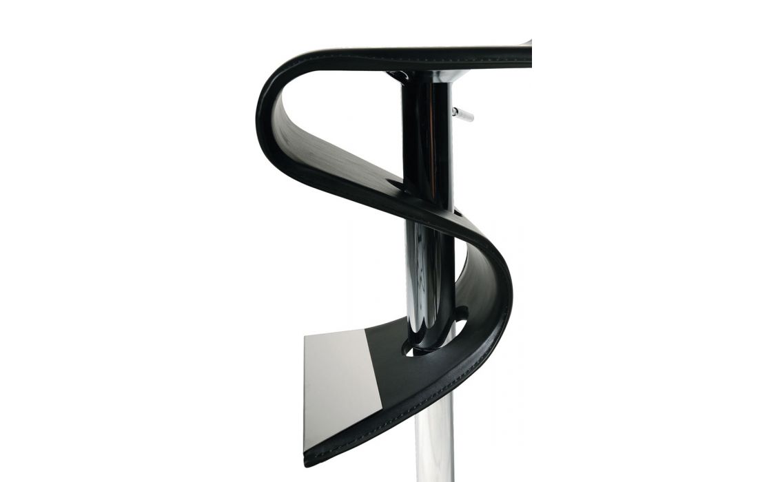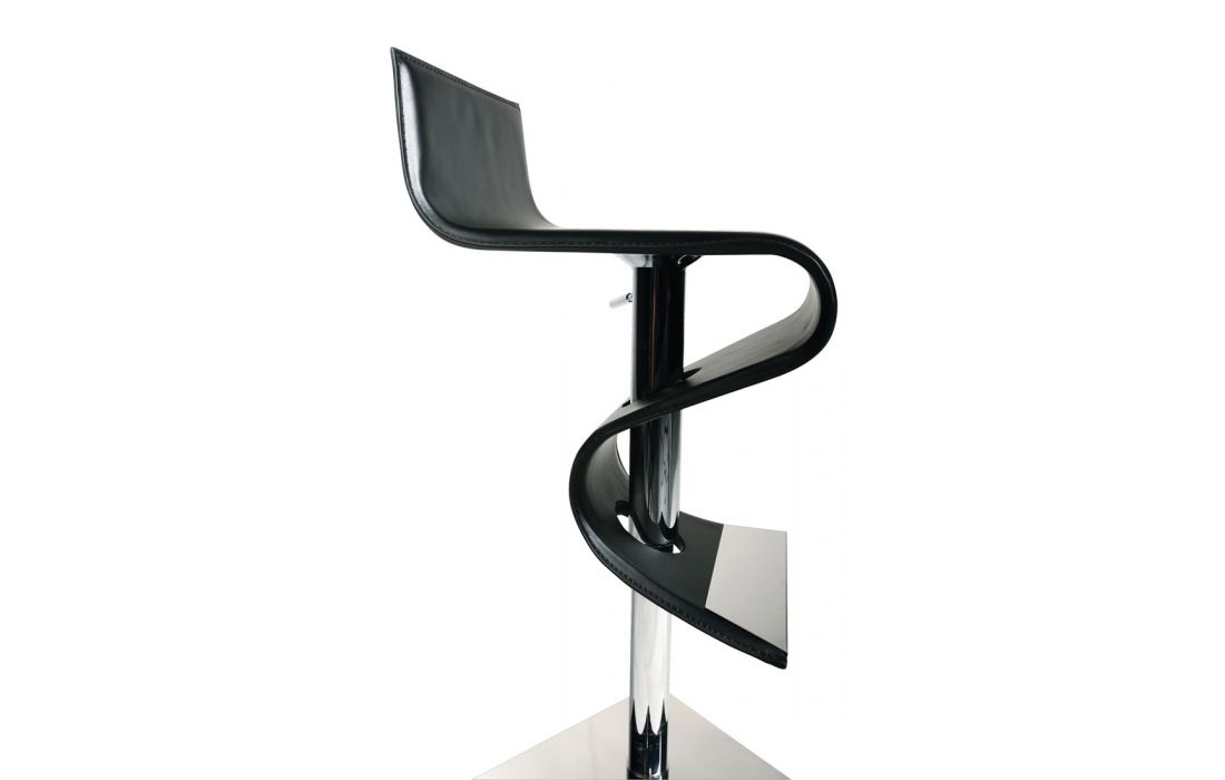 Banco bar com estrutura em metal cromado e estofo em couro regenerado preto