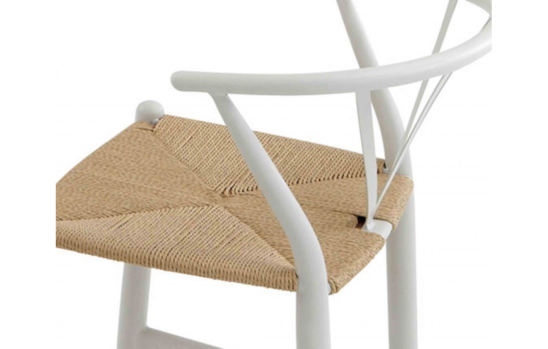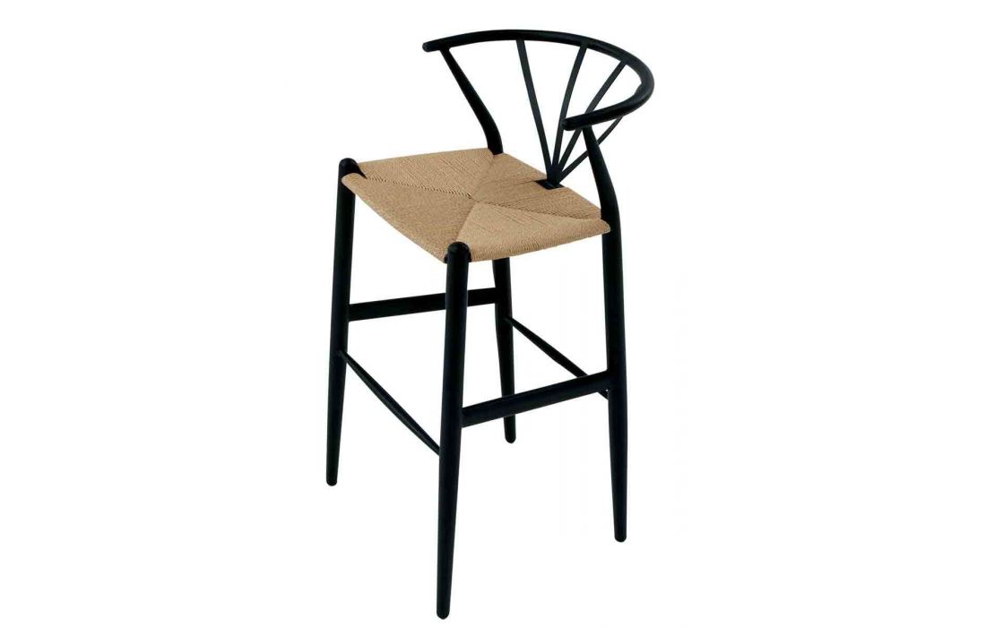 Banco bar com estrutura em metal preto ou branco e estofo em corda natural