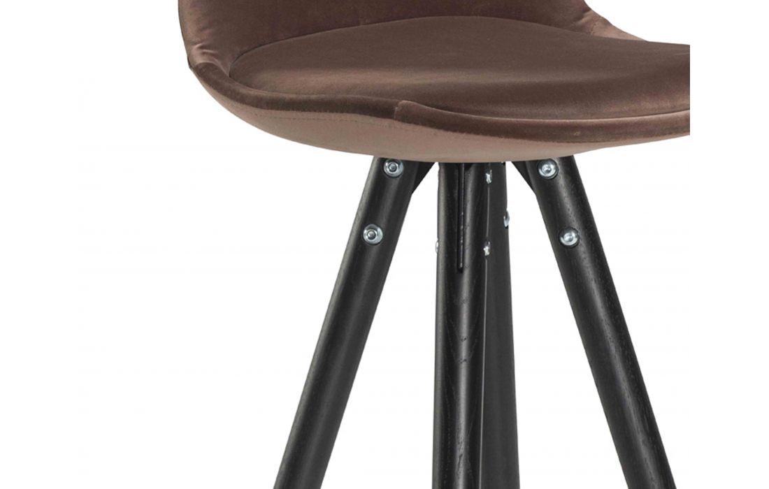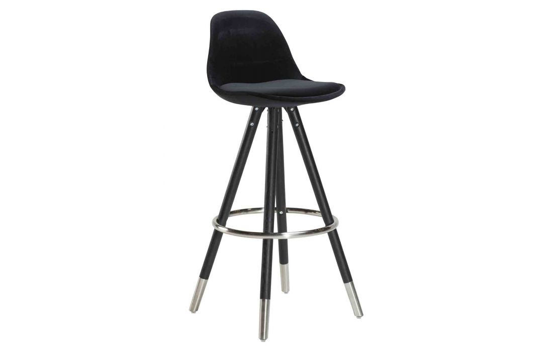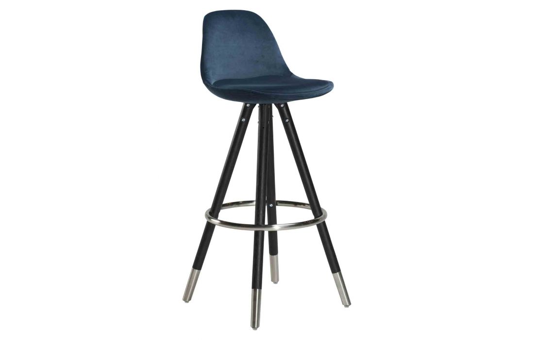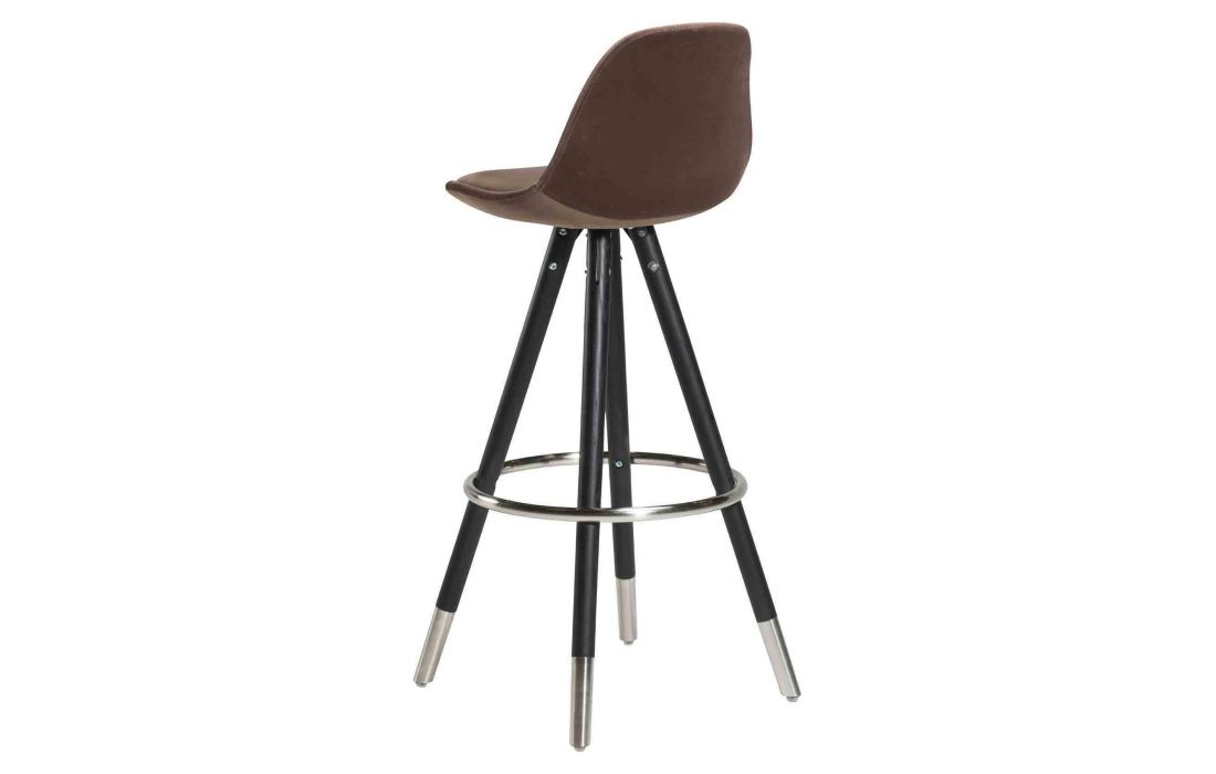 Banco bar com estofo em tecido veludo castanho, azul petroleo ou preto com pés em preto e tampas de metal
