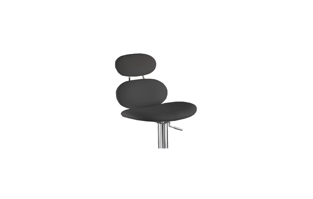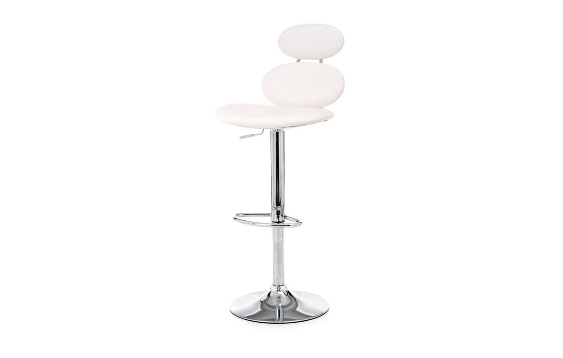 Banco bar giratório com estrutura em aço cromado e assento em pele sintética de cor branco ou preto.
