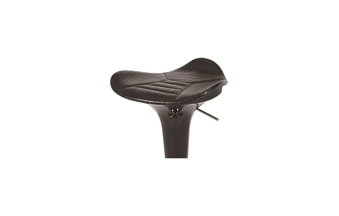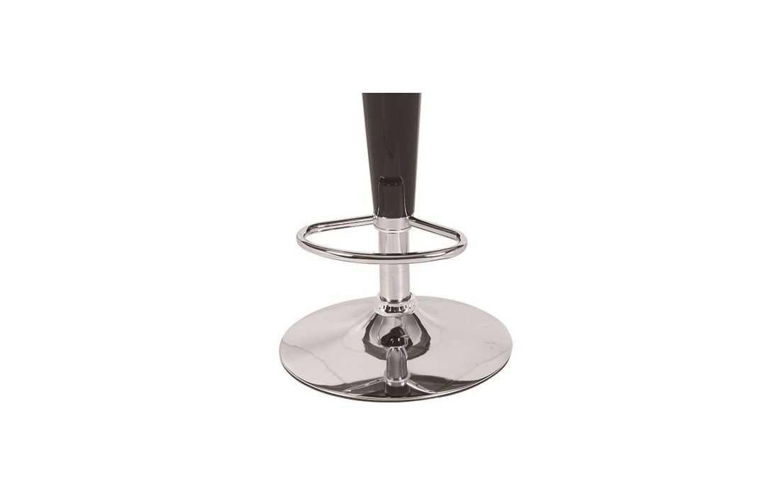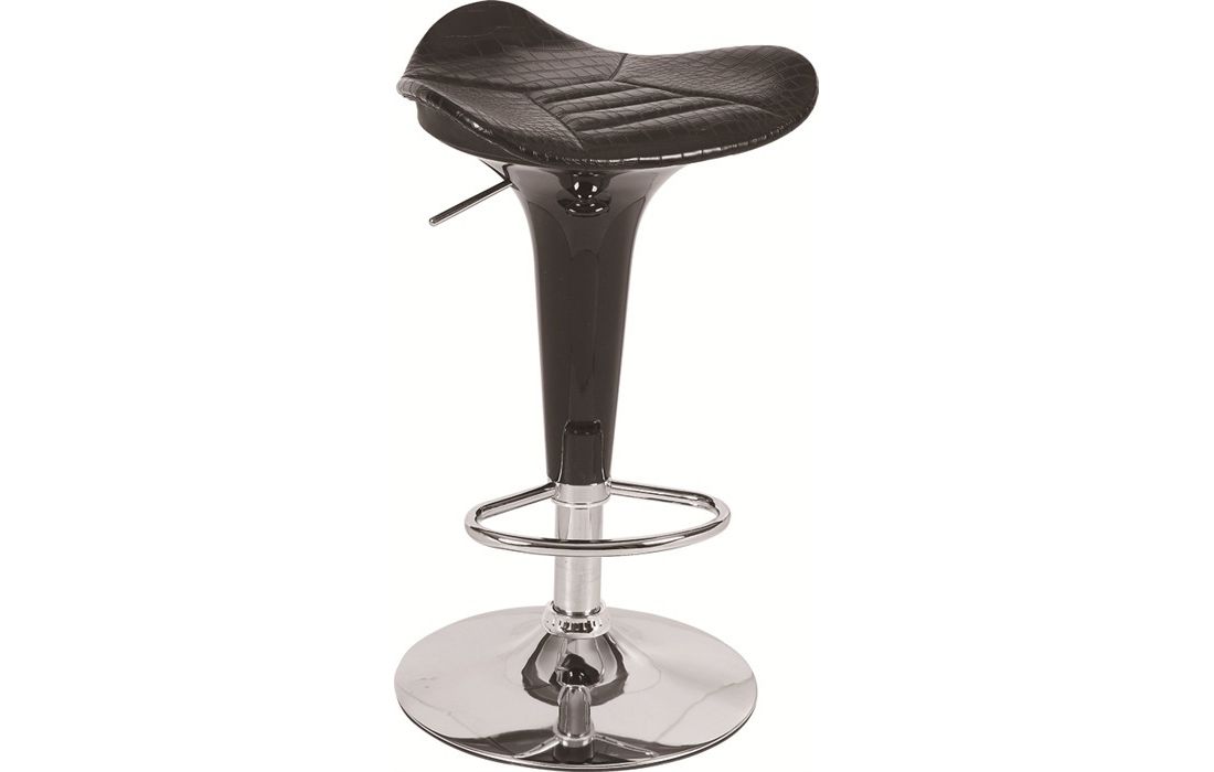 Banco bar com estrutura em aço cromado e assento em abs revestido em pele sintética de cor preto.