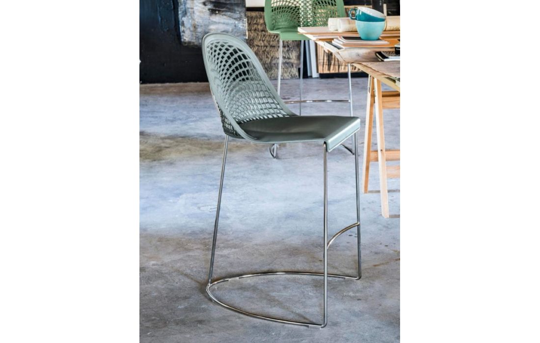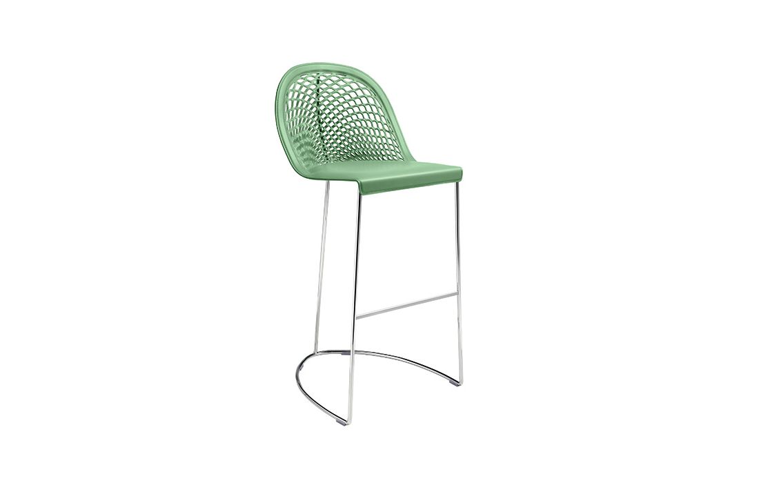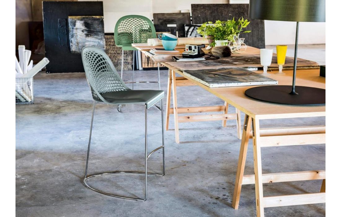 Banco bar com base trenó, estrutura em metal com assento e encosto em couro.Destinatário :
