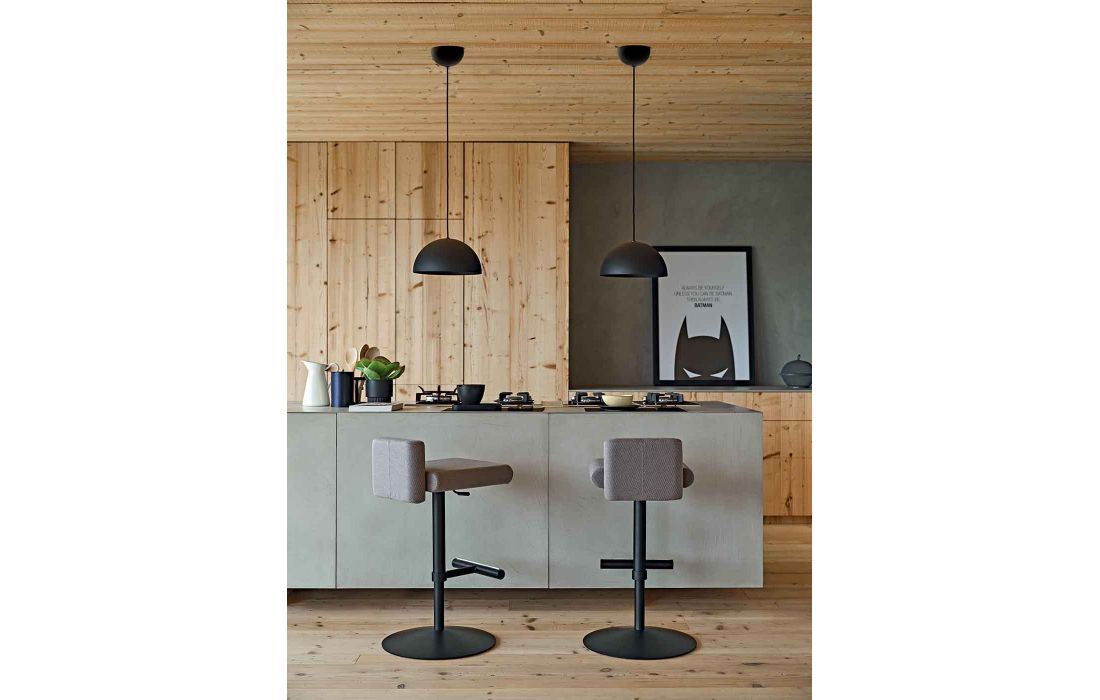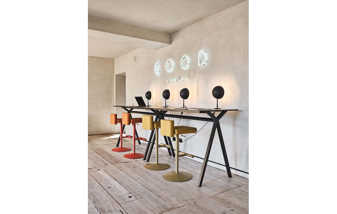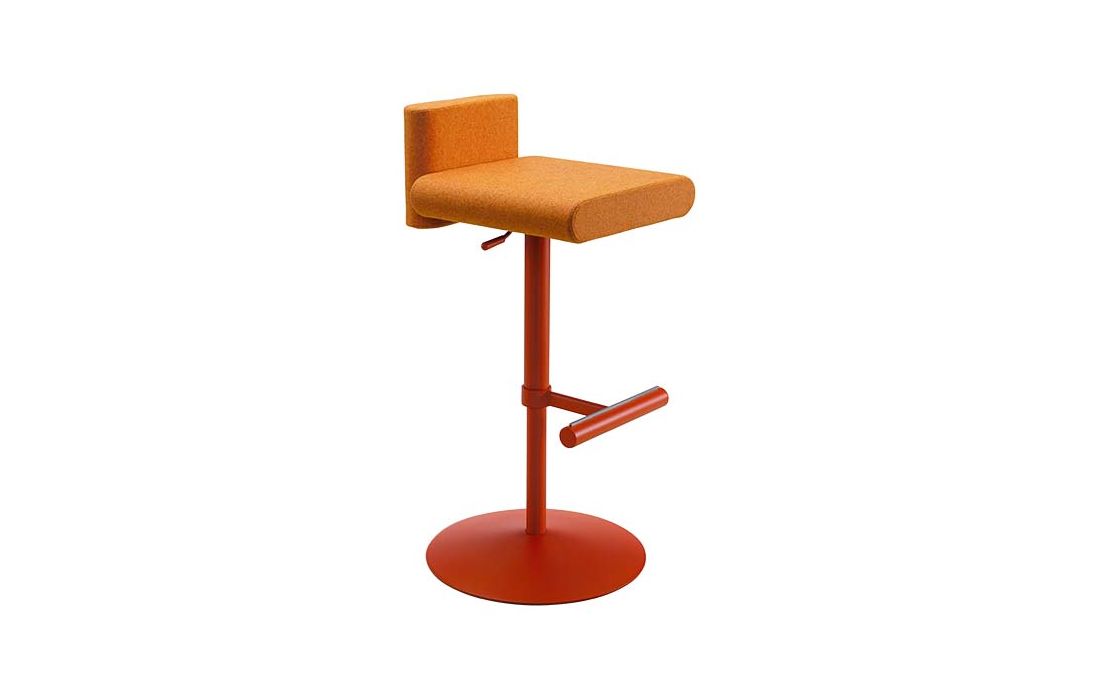 Banco giratório e regulável em altura com estrutura metálica em metal lacado mate. Assento e encosto estofados em tecido.Destinatário :