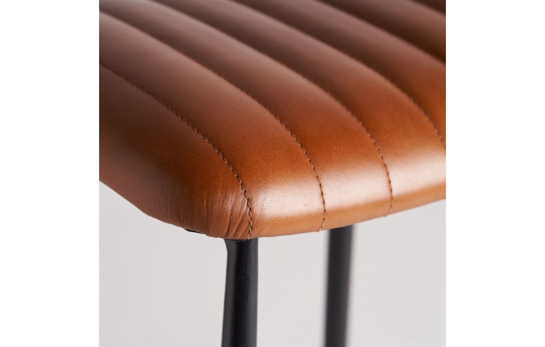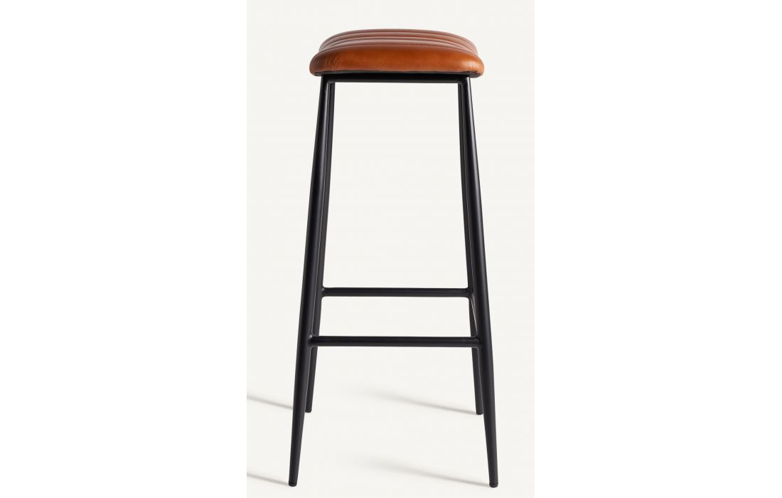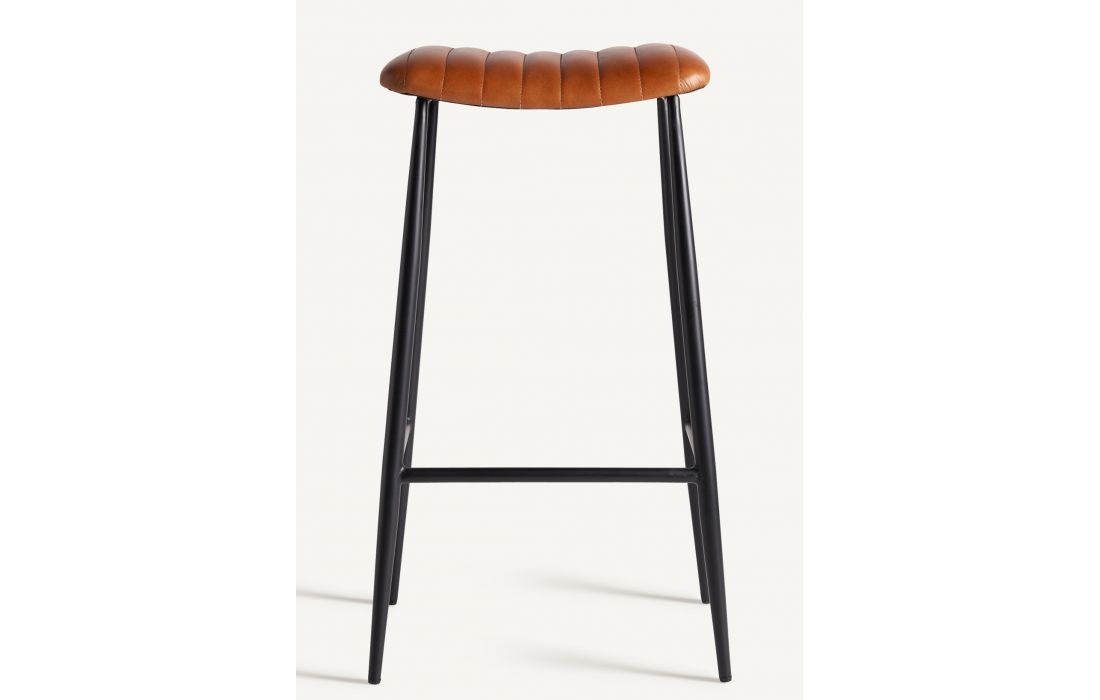 Banco bar com estrutura de ferro preto e estofo em pele castanha