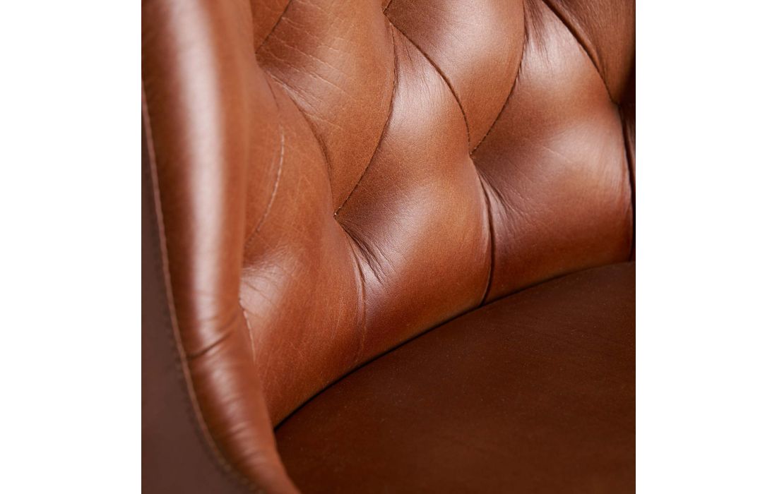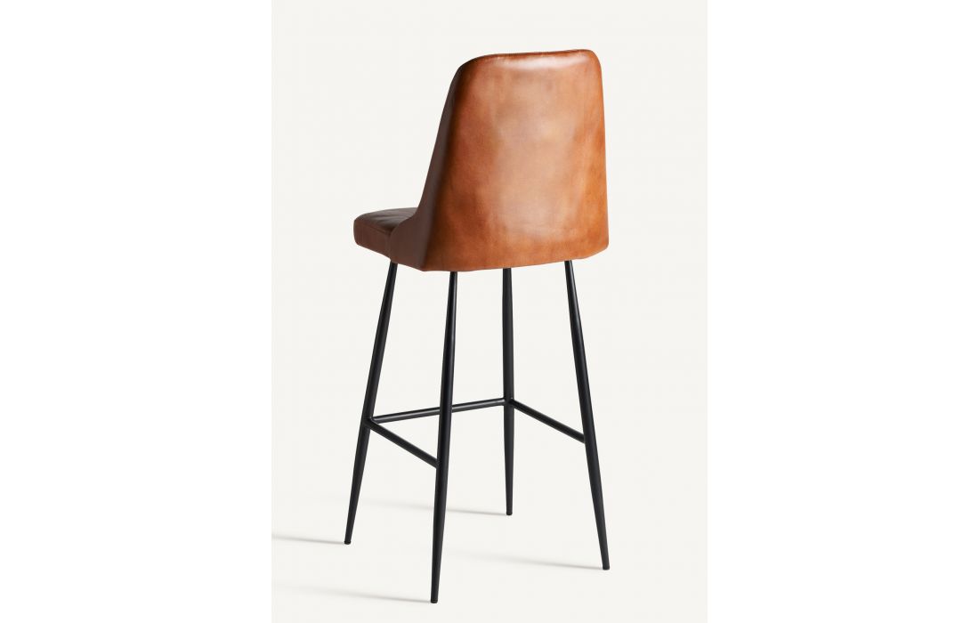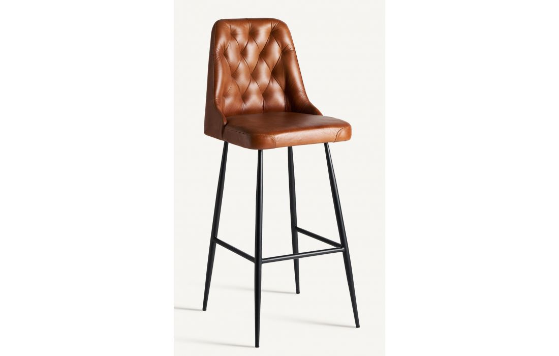 Banco bar com estrutura de ferro preto e estofo em courocor castanha