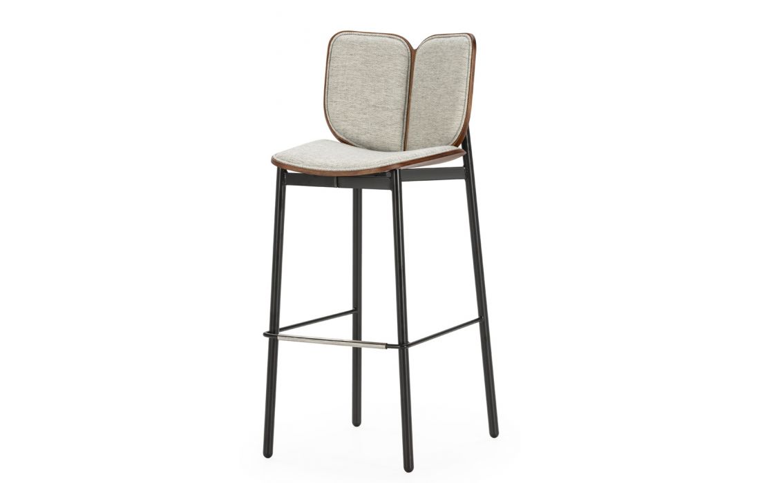 Prazo de entrega: 30/45 diasBanco bar com costas e assento revestido em tecido, ecopele sintética ou pele genuína com estrutura cromada ou em aço branco