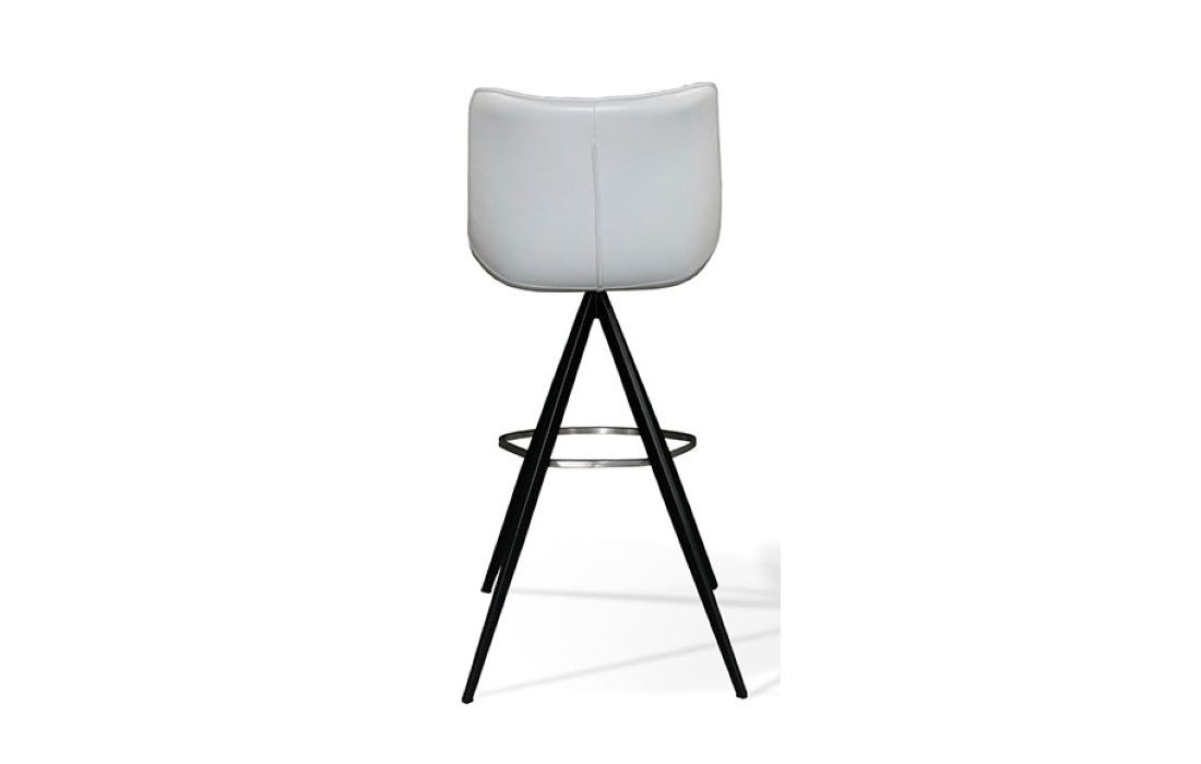 Banco de bar com pés metálicos em acabamento mate com apoio para os pés de aço e assento e e encosto em polipele com pesponto decorativoDestinatário :