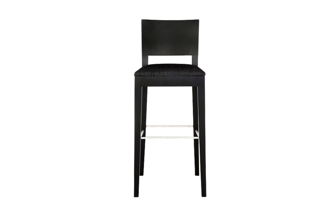Banco Bar em madeira maciça com estofo em tecido ou pele sintética nos vários acabamentos possiveis