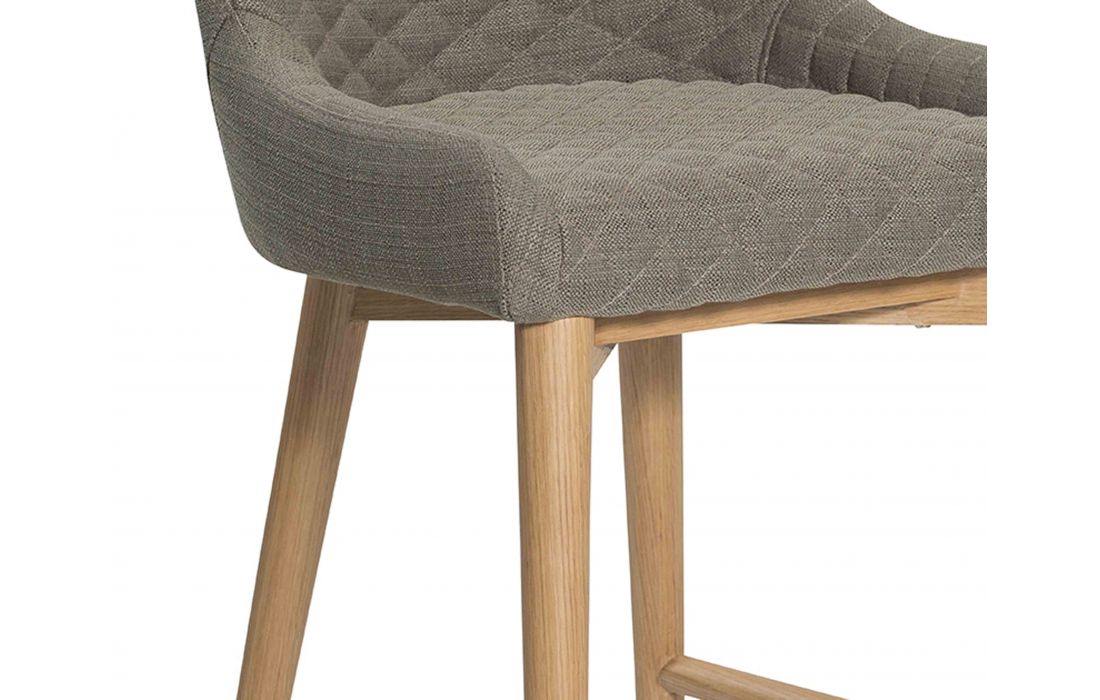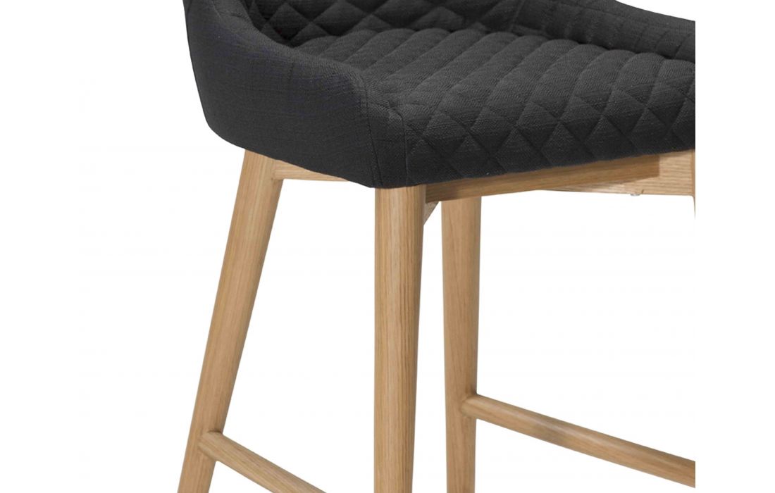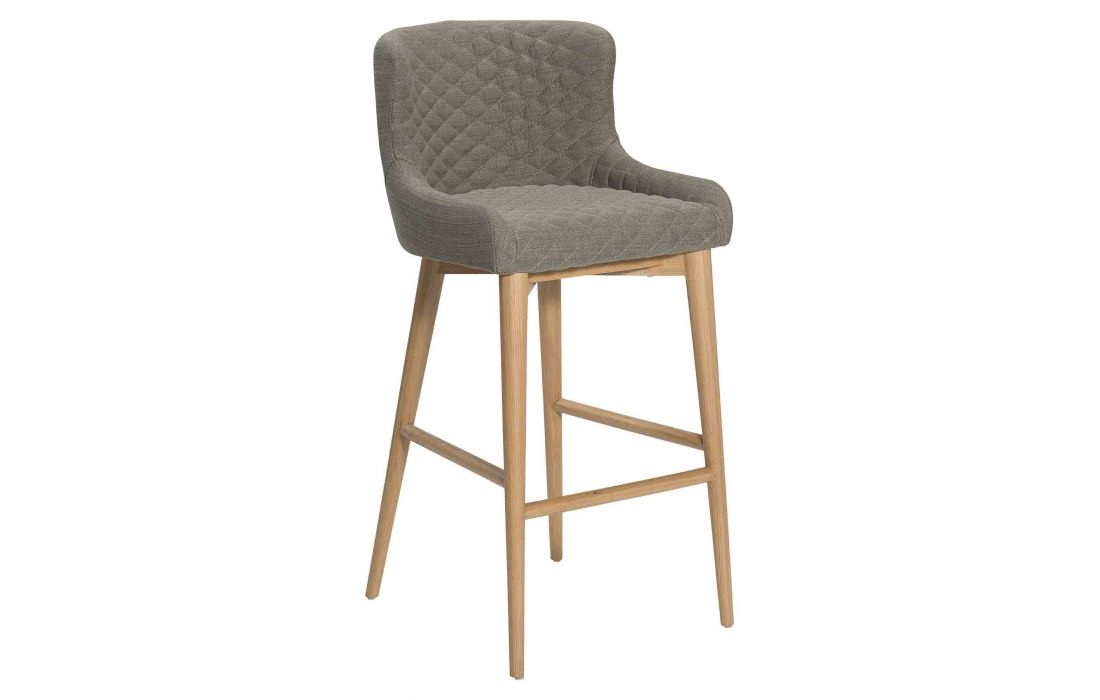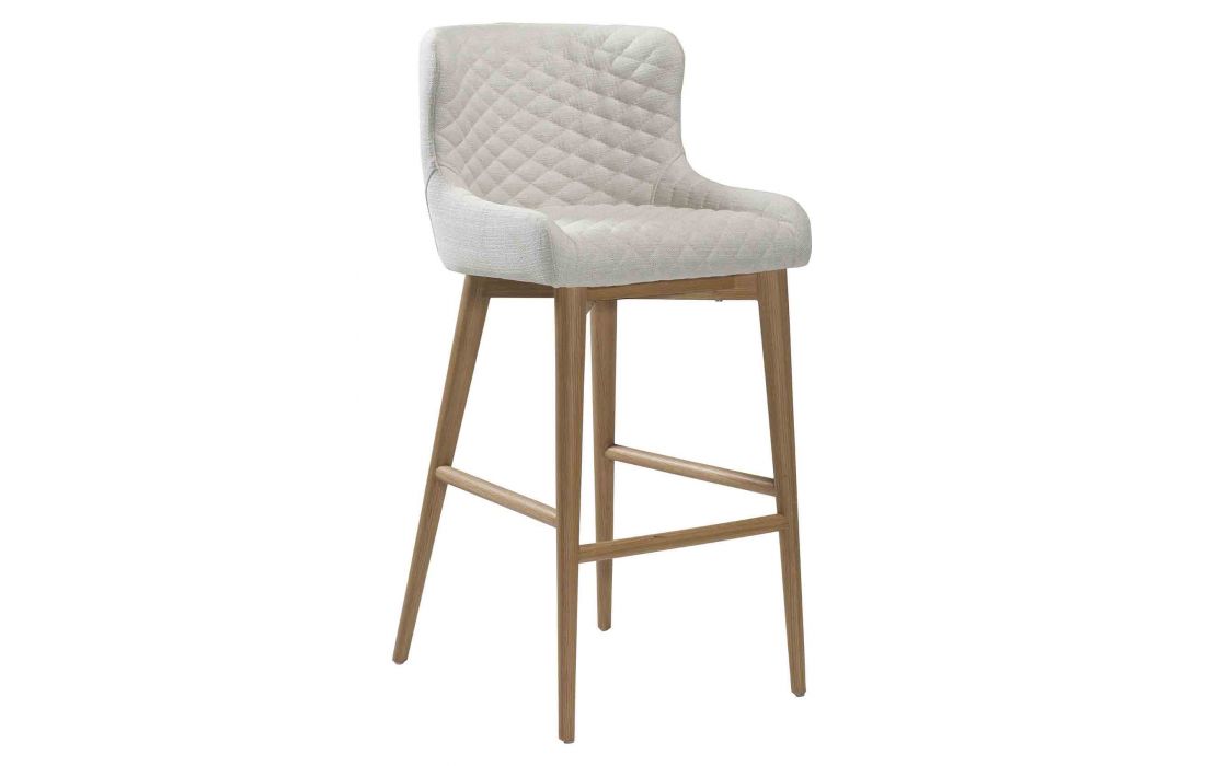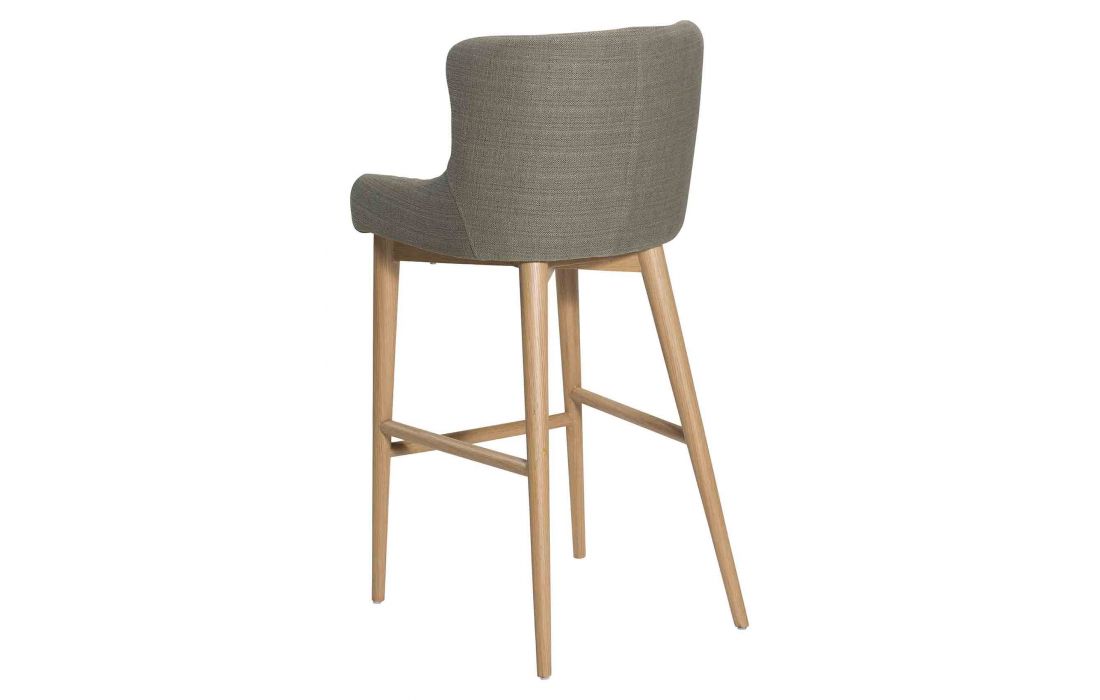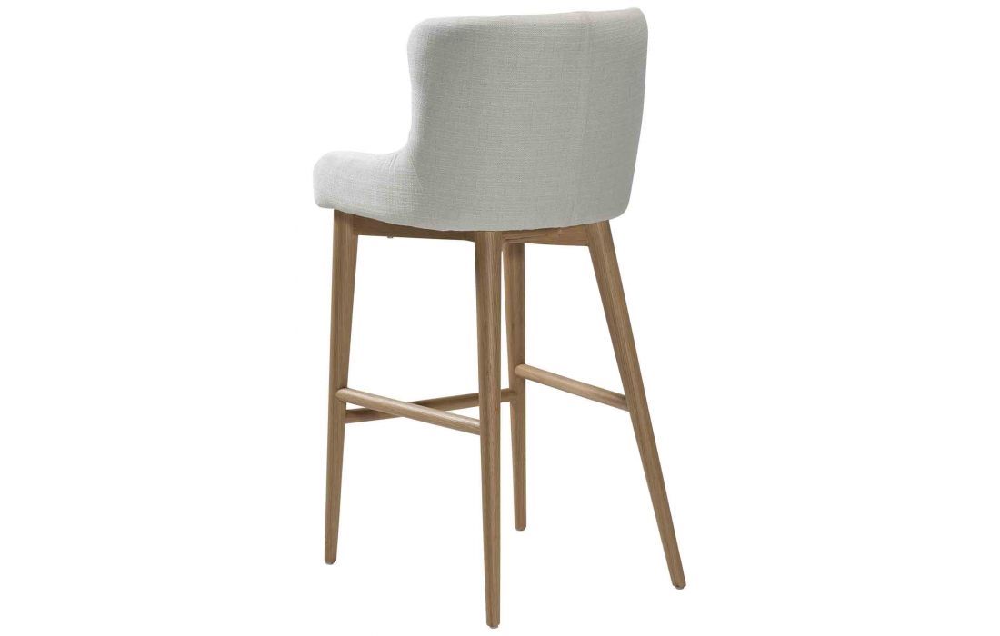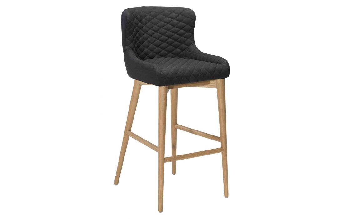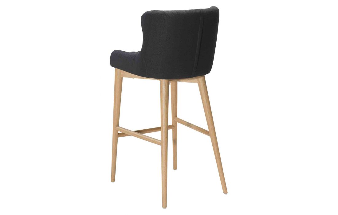Banco Bar em madeira maciça de carvalho com estofo em tecido bege, preto ou castanho claro