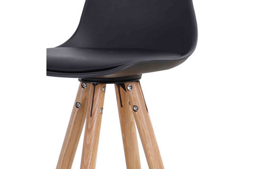Banco Bar com estrutura de plastico preto com pés em madeira maciça de carvalho com pormenor de metal
