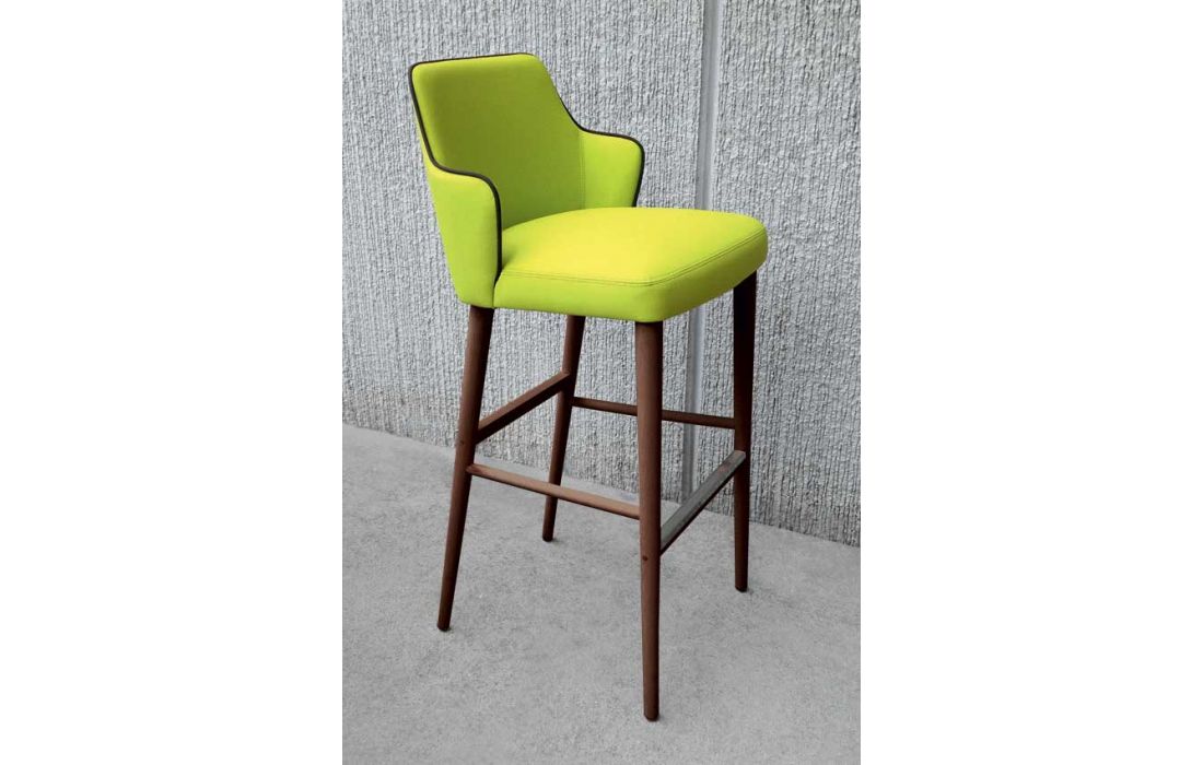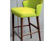Banco bar revestido em tecido e com pés em madeira nogueira ou carvalho queimado