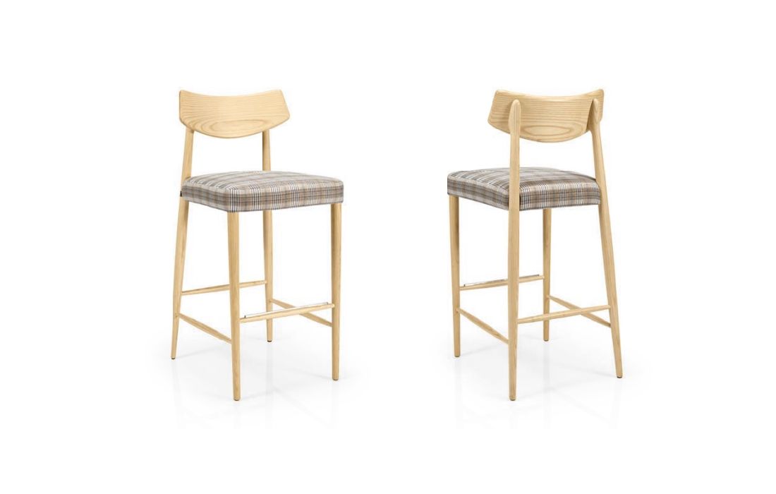 Banco Bar em tecido e estrutura de pernas em madeira de faia.