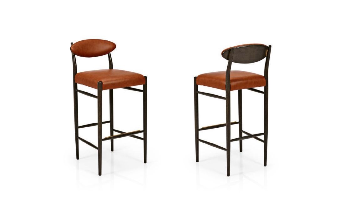 Banco Bar em tecido e estrutura de pernas em madeira de faia.