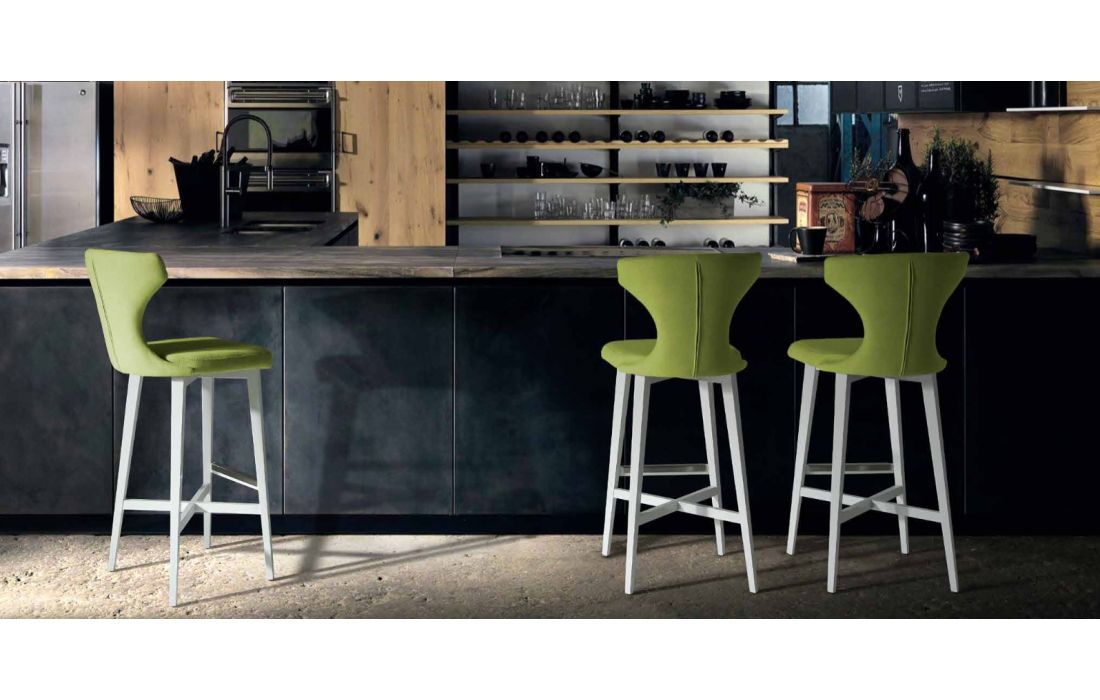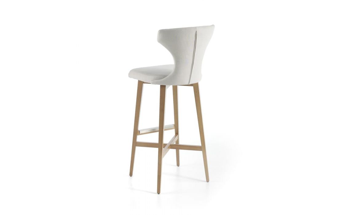 Banco bar em tecido com pés em madeira.