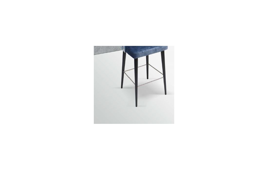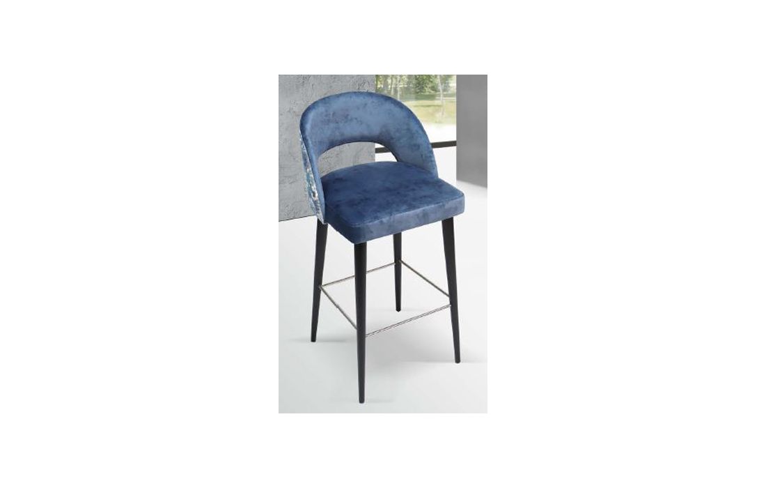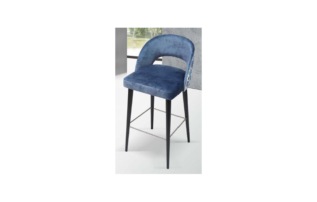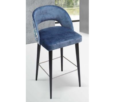 Banco bar estofado, pousa pés de metal com pés em madeira maciça de freixo nos vários acabamentos e revestimentos possiveis.