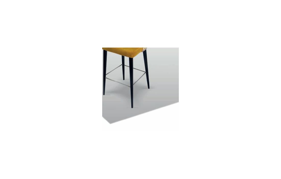 Banco bar estofado, pousa pés de metal com pés em madeira maciça de freixo nos vários acabamentos e revestimentos possiveis.