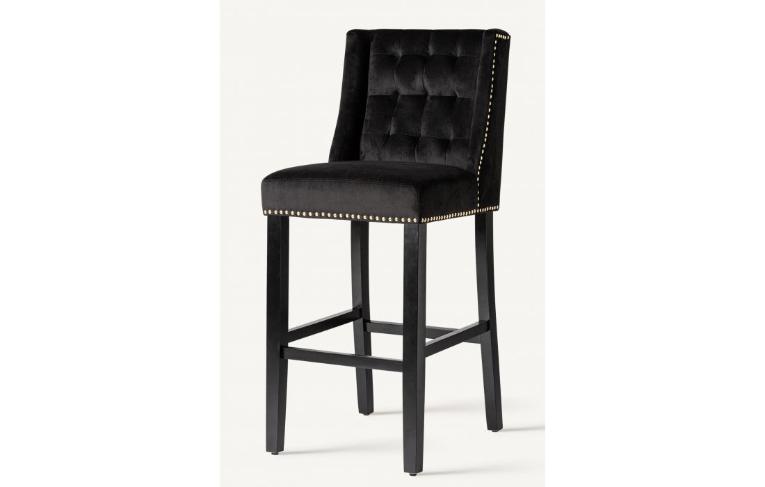 Banco bar com pernas em madeira maçica de freixo e assento em tecido, tecido aveludado, pele ou ecopeleDimensões em cmL 50 P 54 A 100Prazo de Entrega30 a 45 dias
