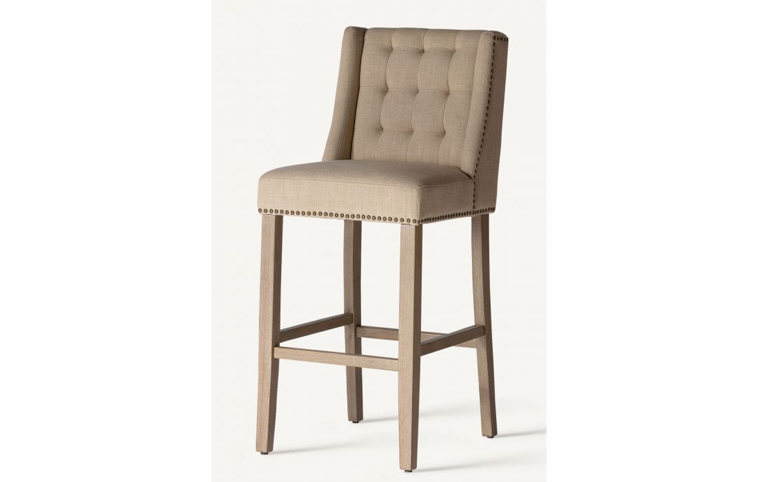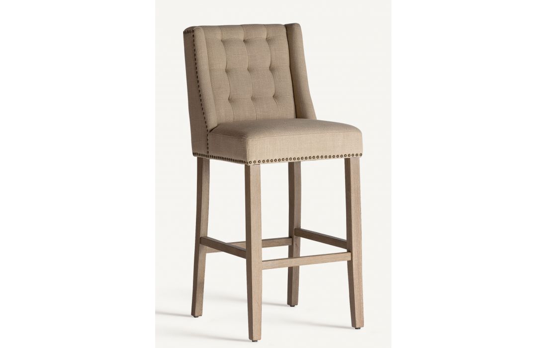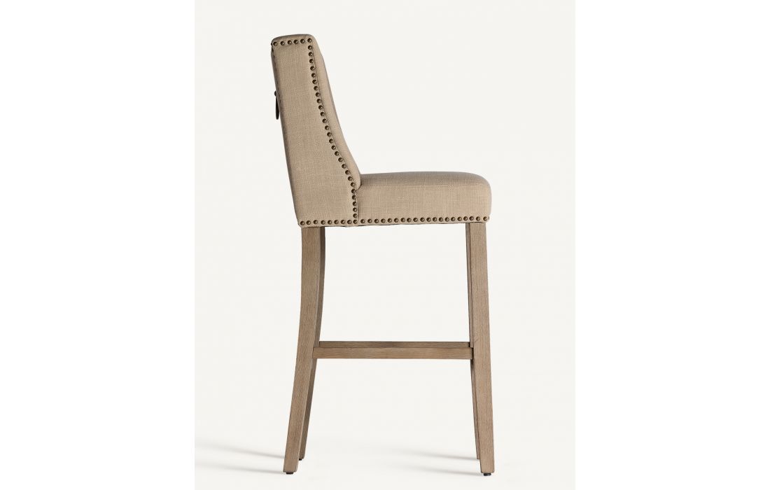 Banco bar com pernas em madeira maçica de freixo e assento em tecido, tecido aveludado, pele ou ecopeleDimensões em cmL 50 P 54 A 100Prazo de Entrega30 a 45 dias