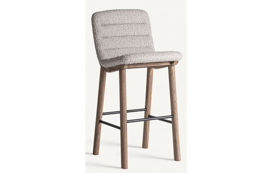 Este bano bar apresenta um encosto curvo e um assento estofado em uma estrutura de olmo, ideal para bares contemporâneos.Destinatário :