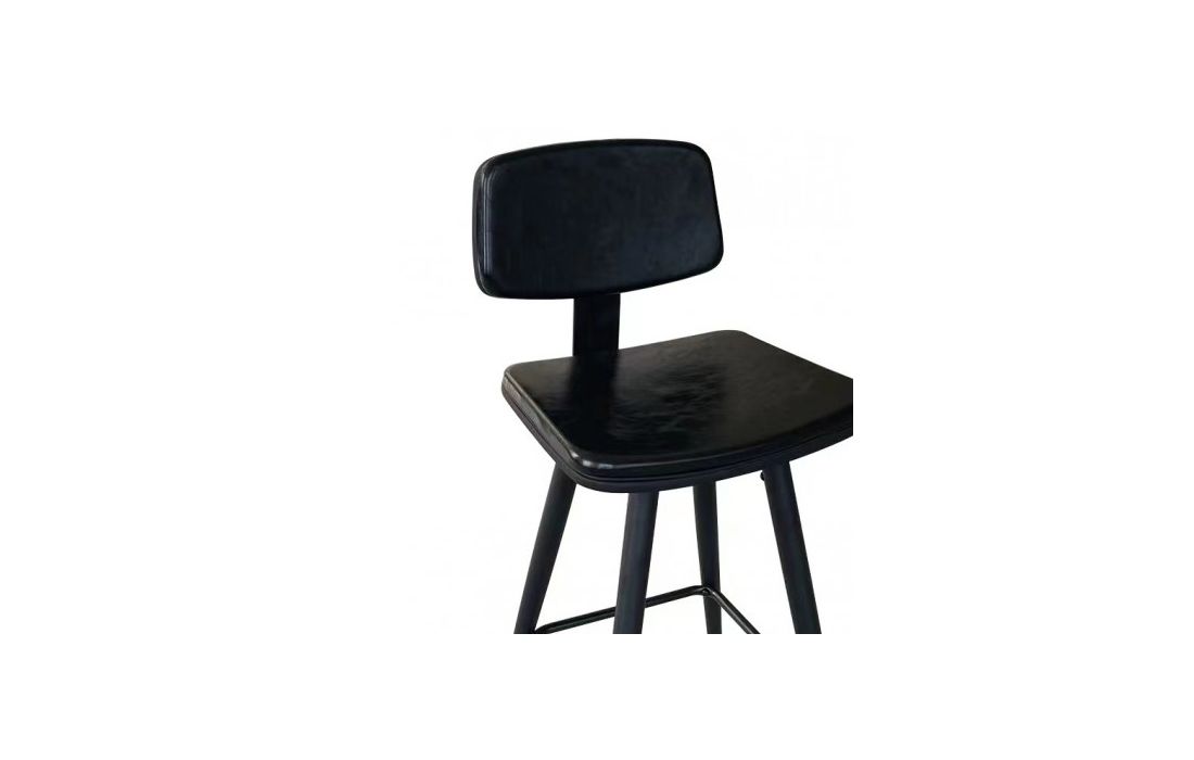 Banco bar em metal cor preta estofado em pele sintetica preta vintage