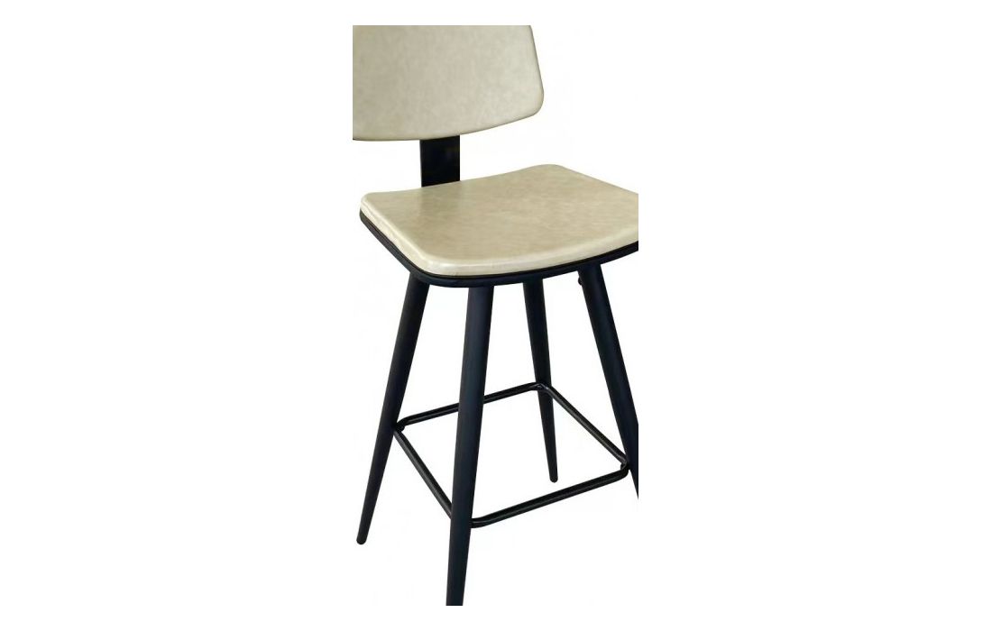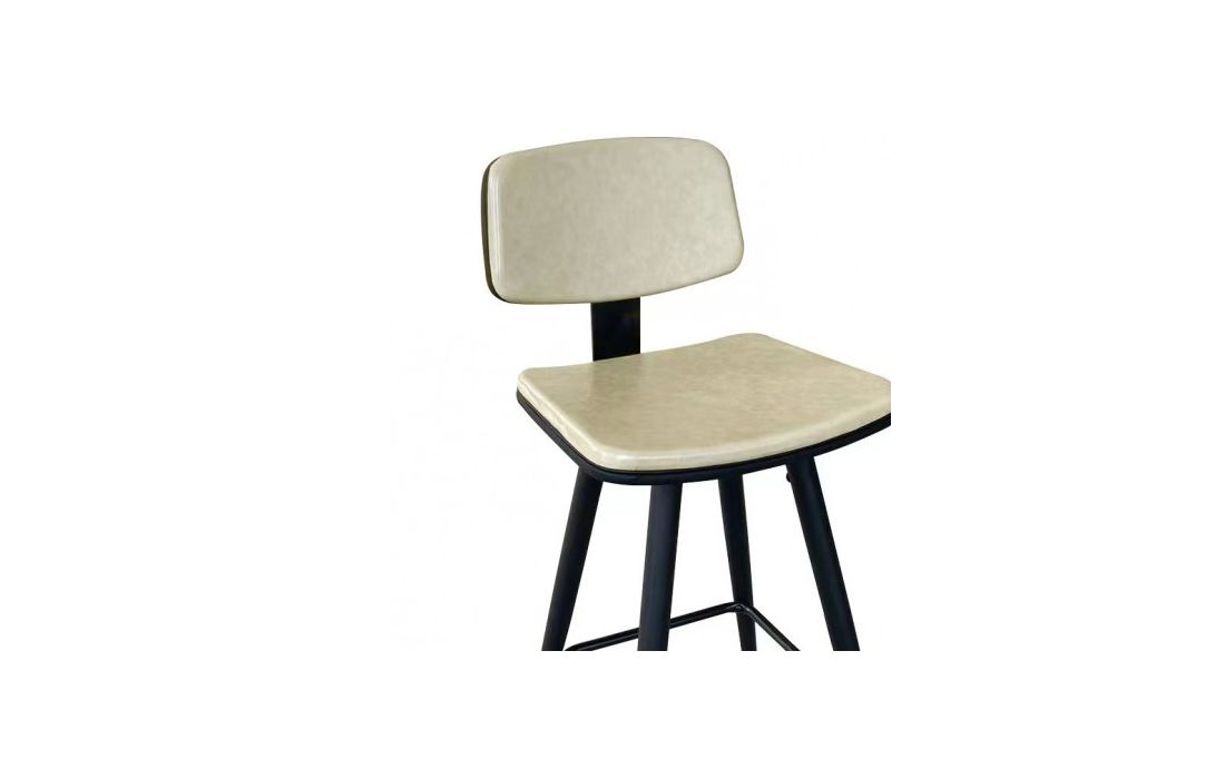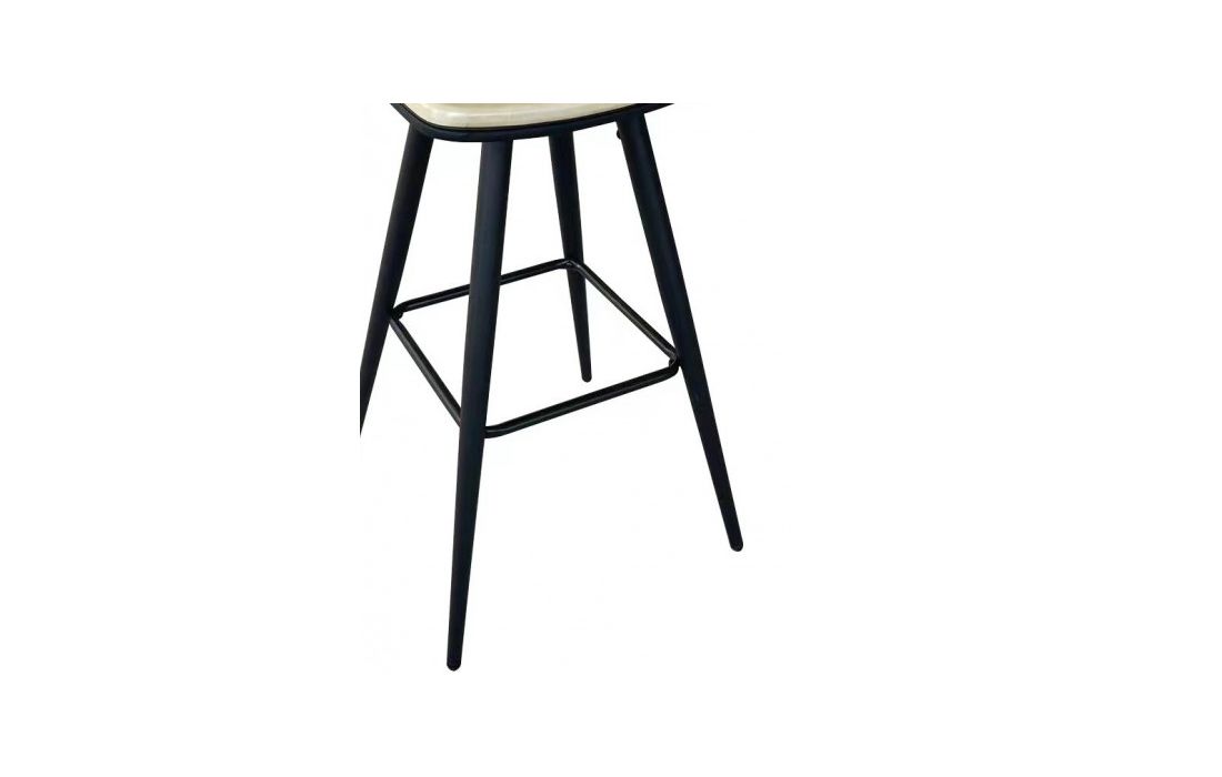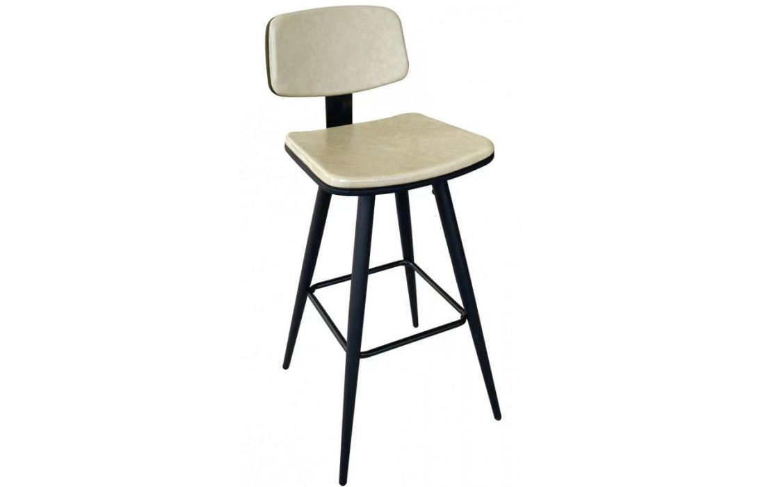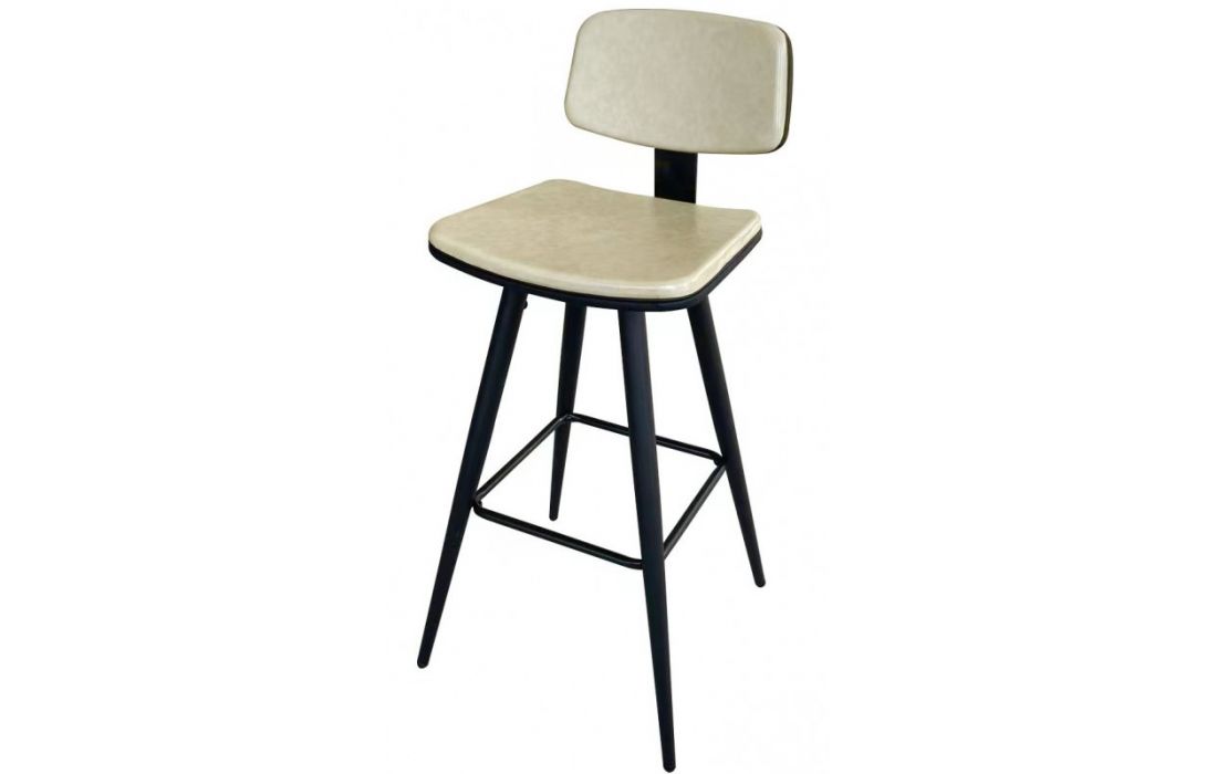 Banco bar em metal cor preta estofado em pele sintetica bege vintage