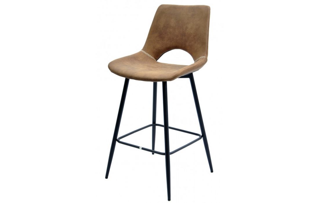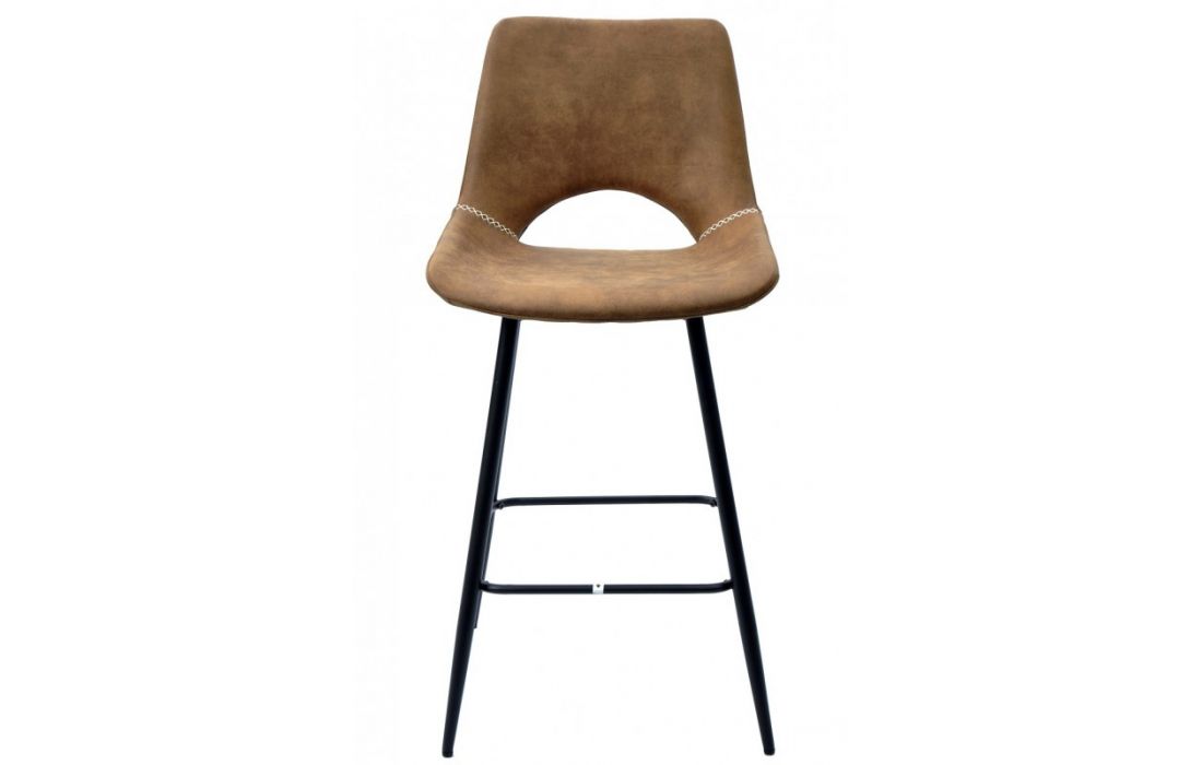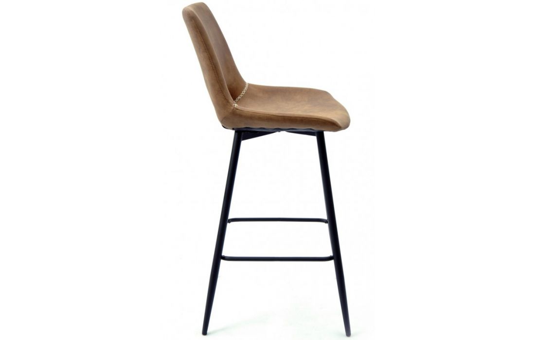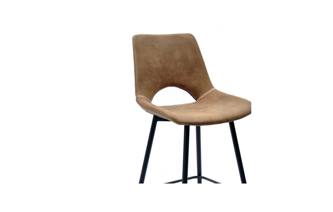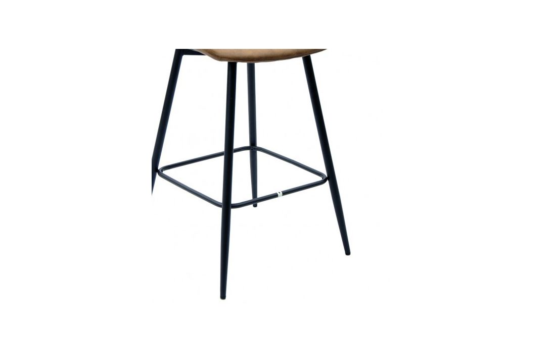 Banco bar em metal cor preta estofado em pele sintetica castanho escuro