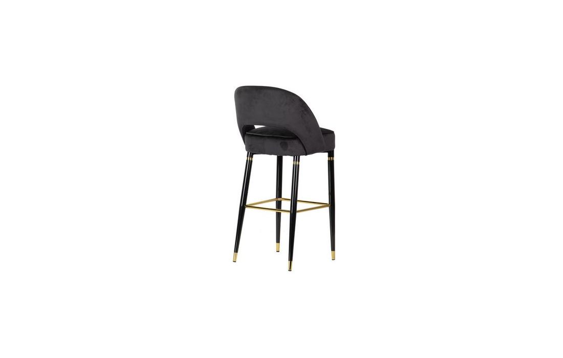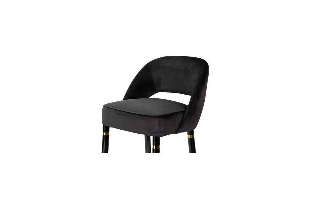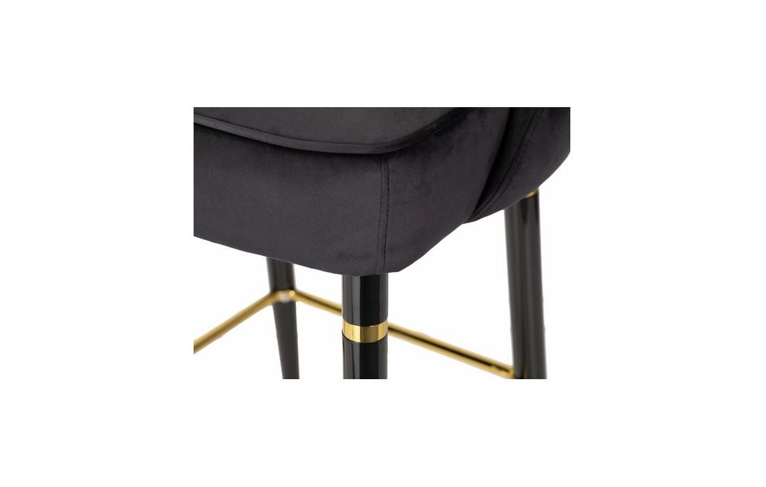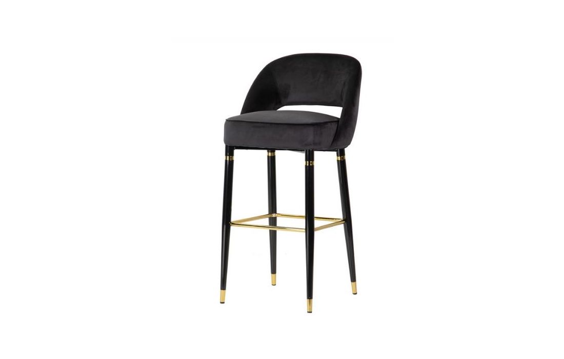 Banco bar estofado a tecido aveludado de cor preta com os pés em ferro de cor preta com detalhes douradosDestinatário :