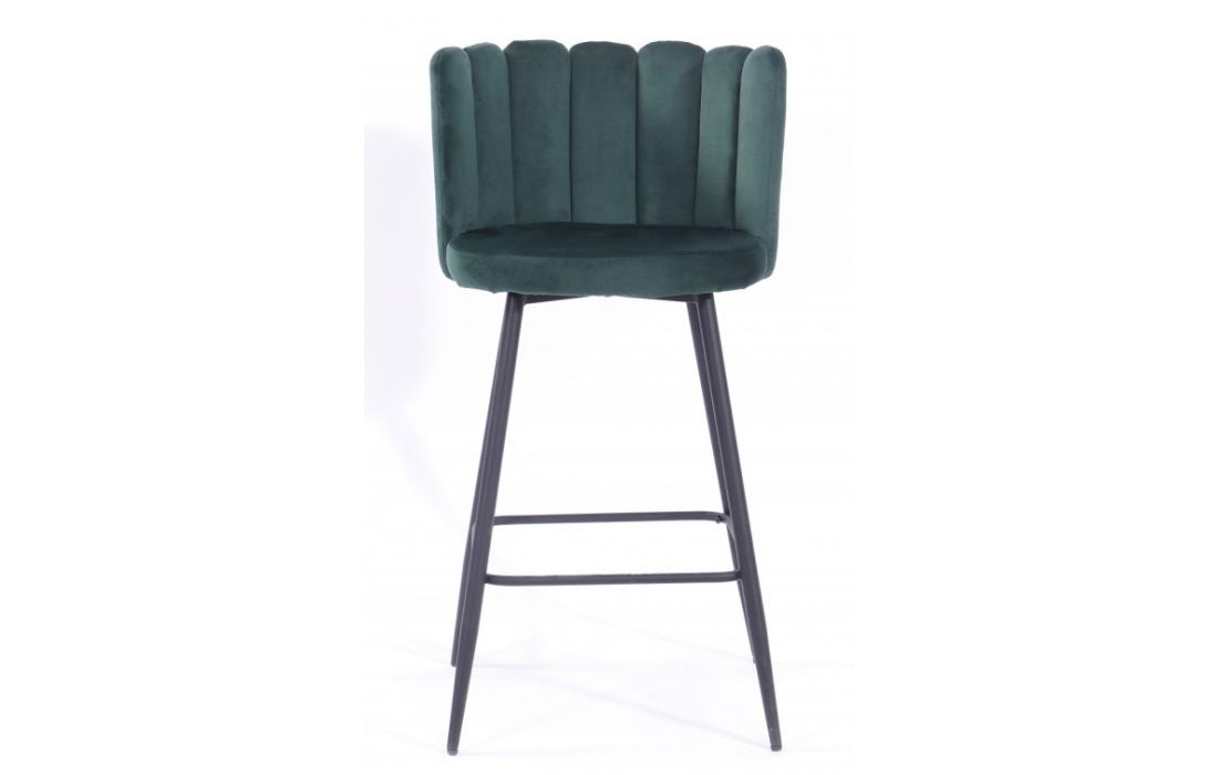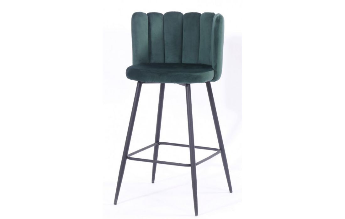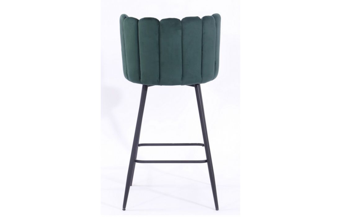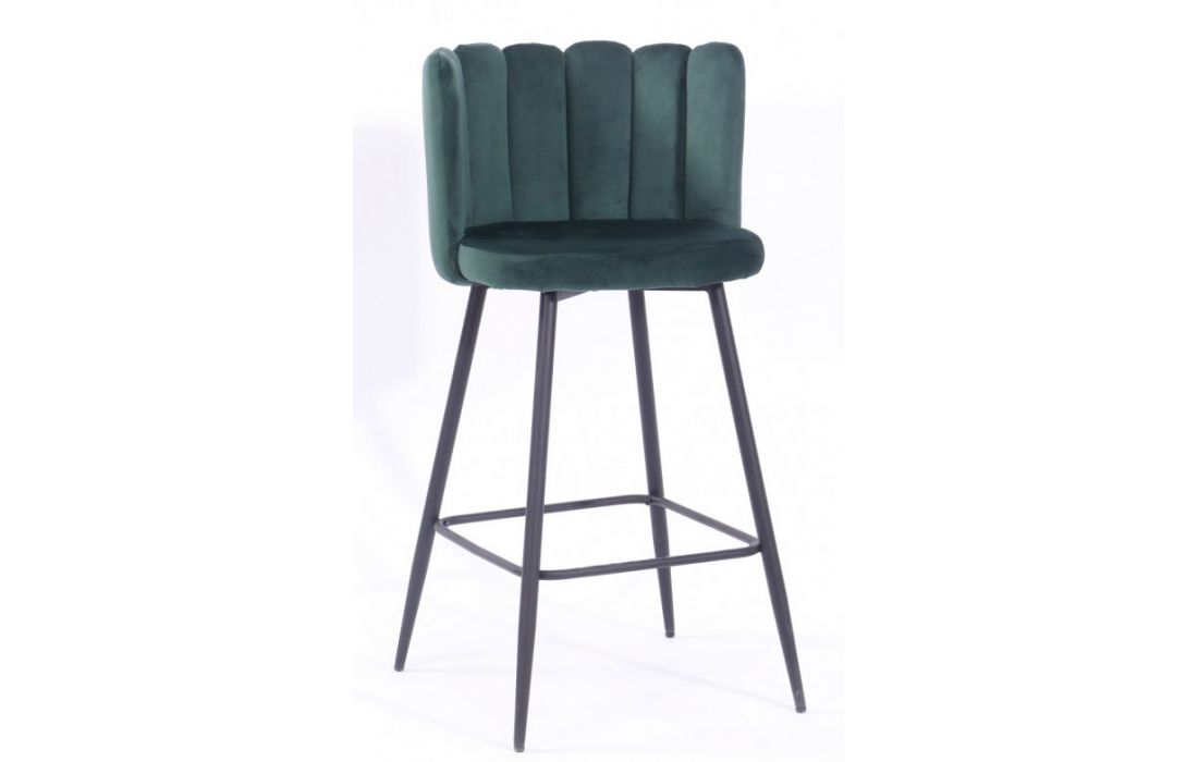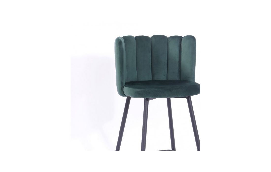 Banco bar em metal cor preta estofado em tecido aveludado cor verde escuro