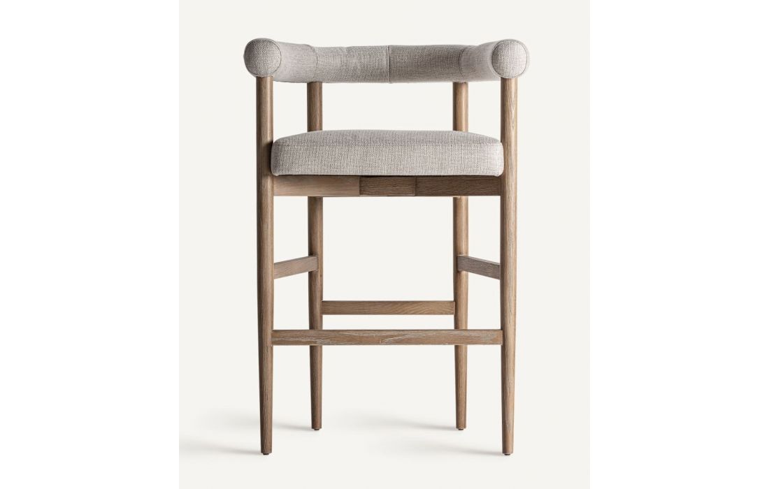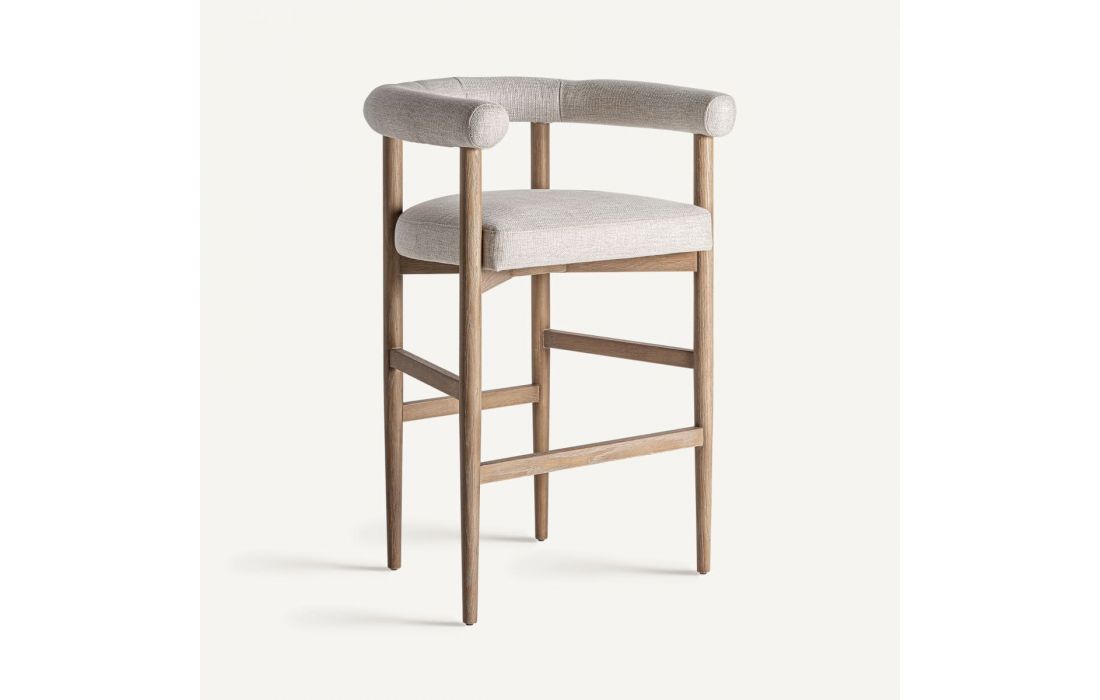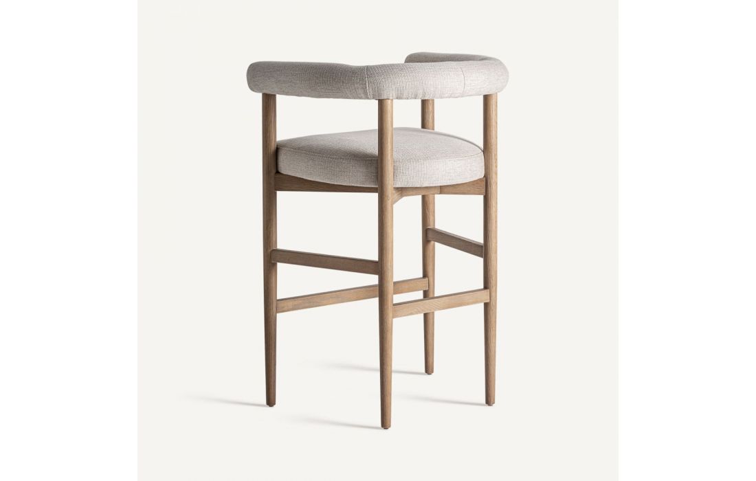 Banco bar estilo contemporâneo feito em madeira de freixo e tecido na cor branca