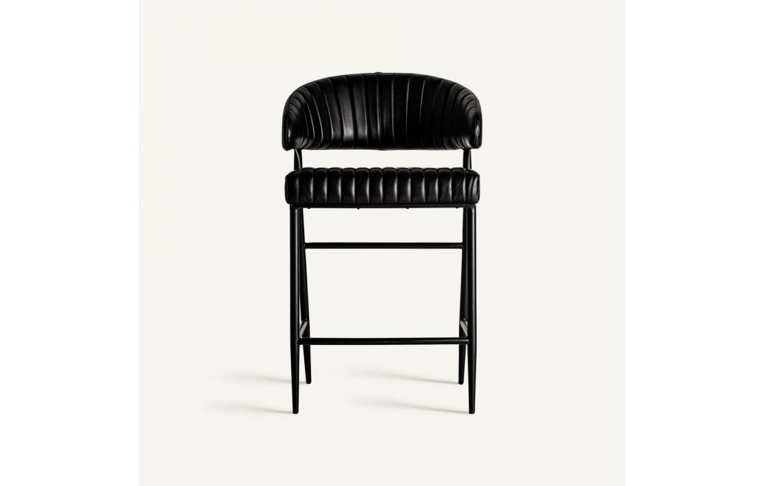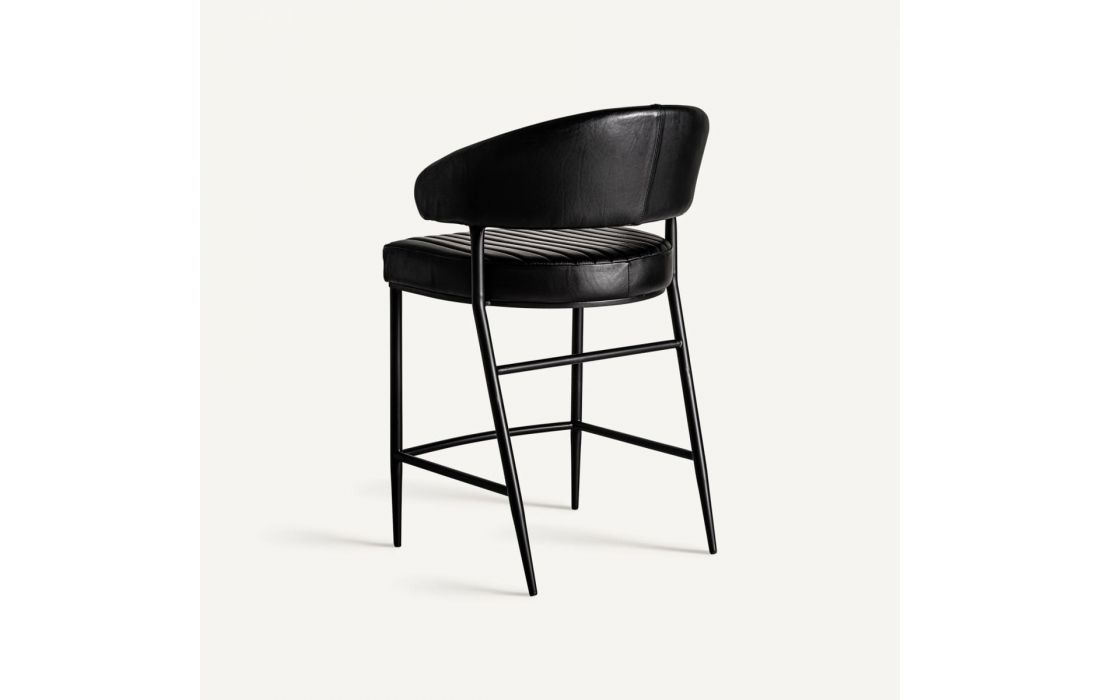 Banco bar estilo vintage feito em ferro e couro na cor preta