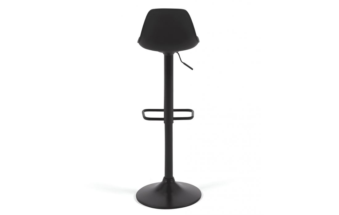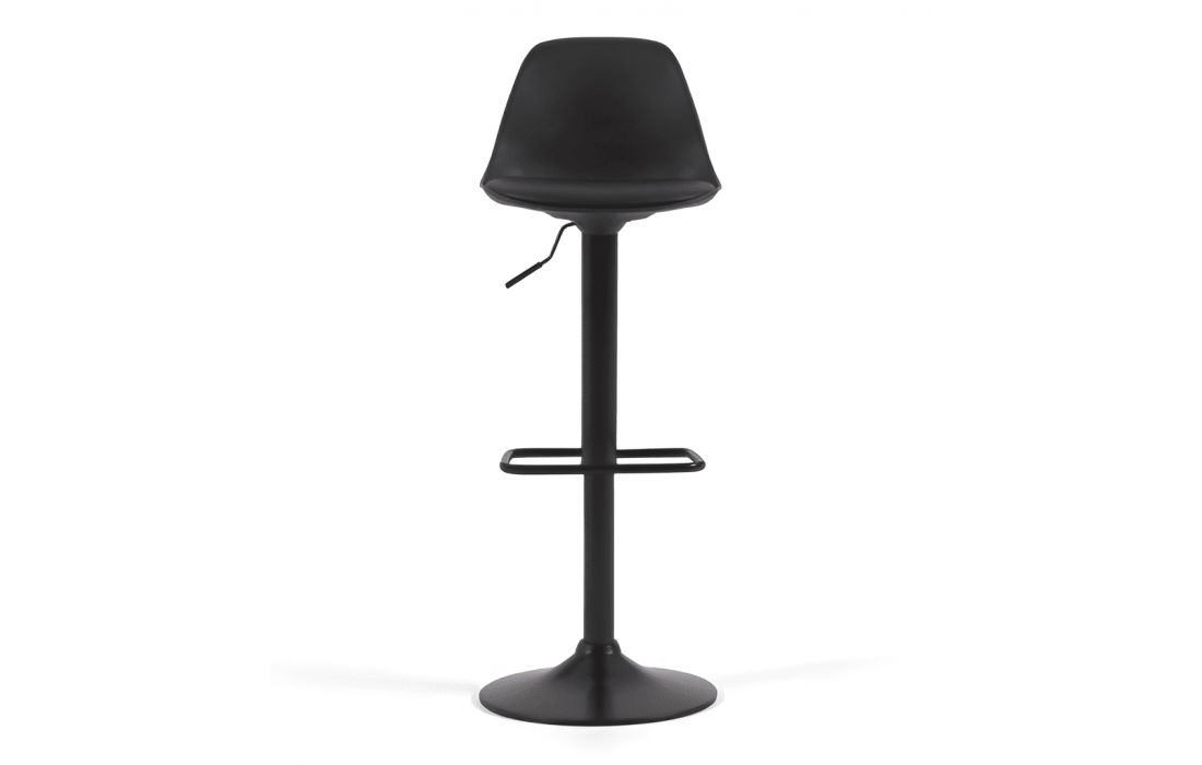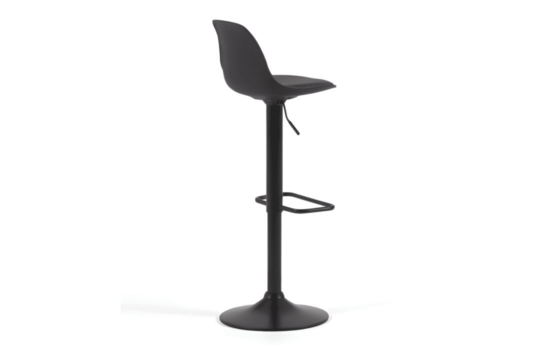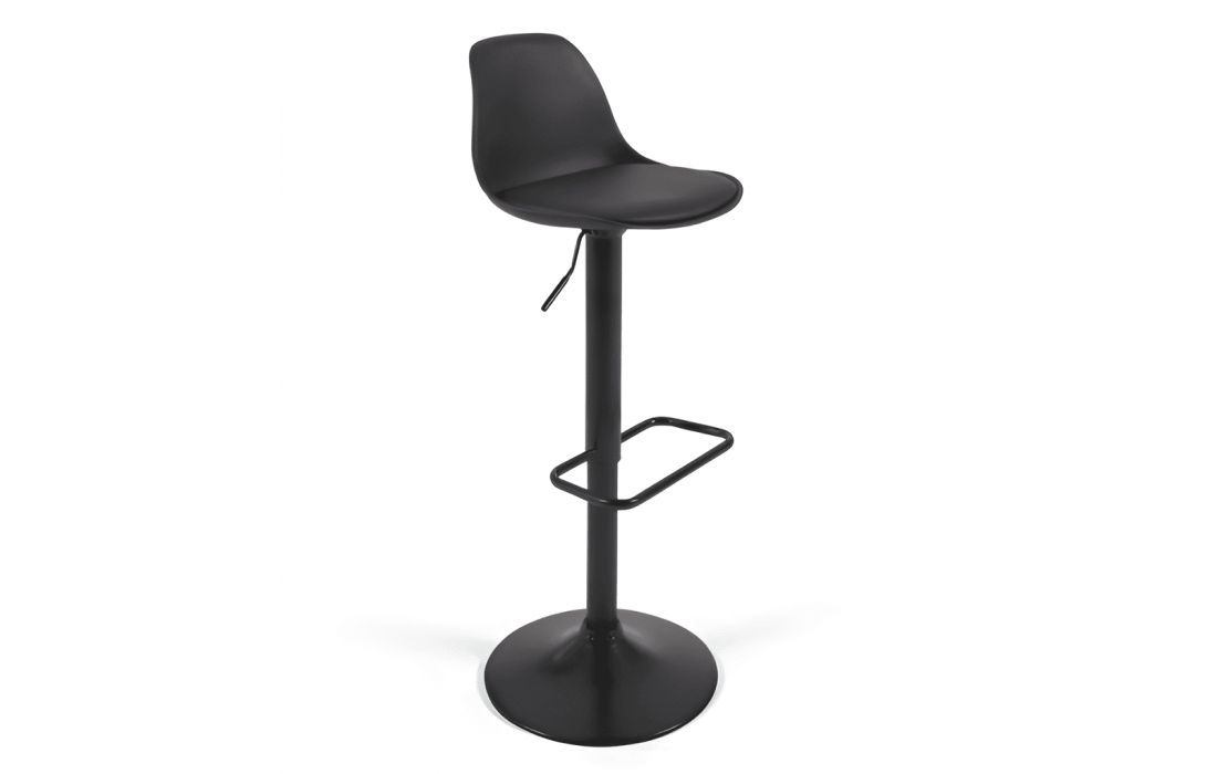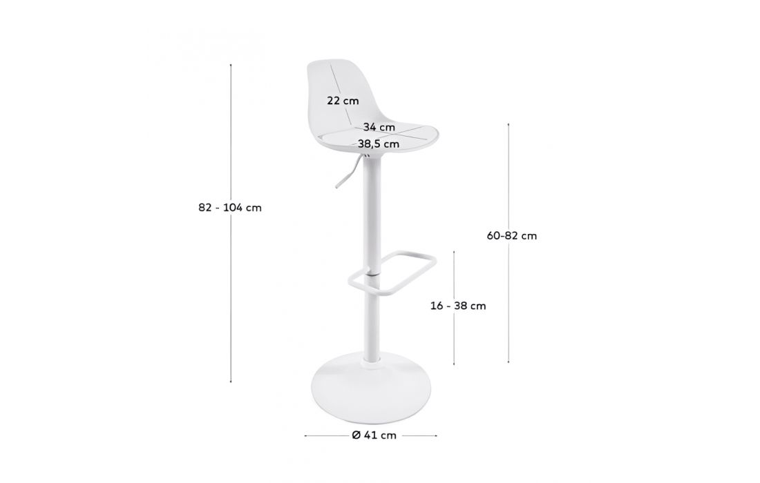Banco bar com estrutura em aço e assento acolchoado de polipropileno.
