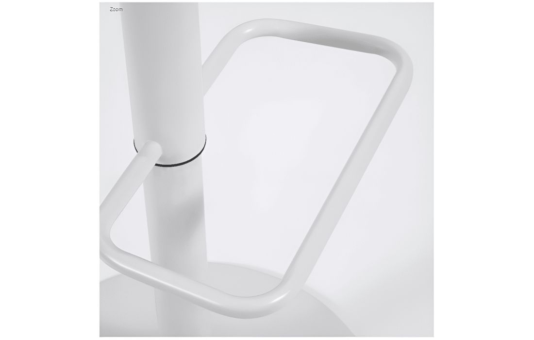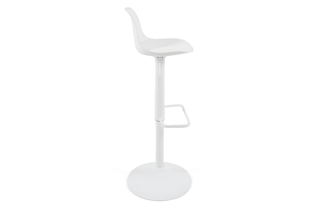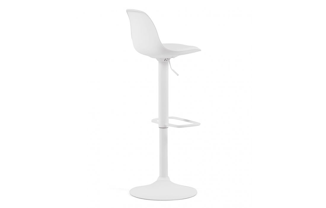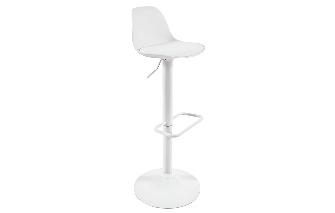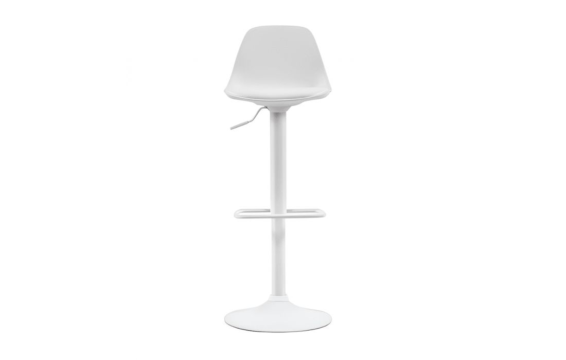 Banco bar com estrutura em aço e assento acolchoado de polipropileno.