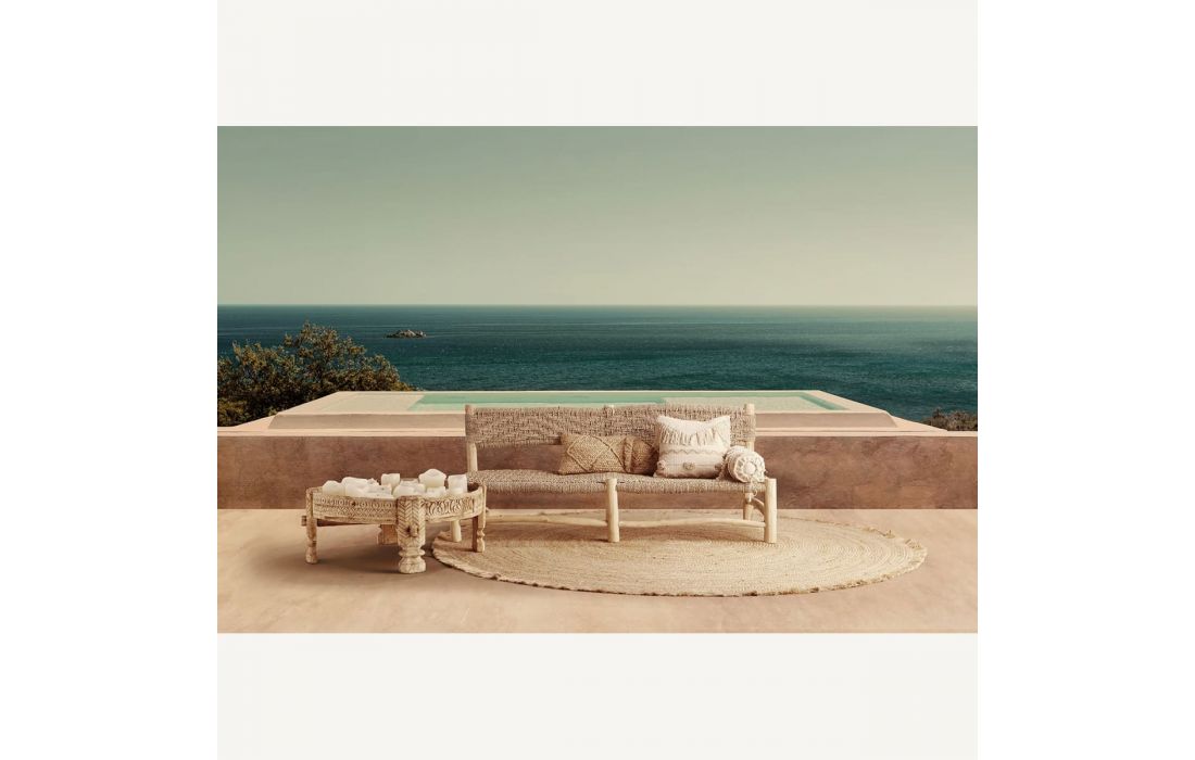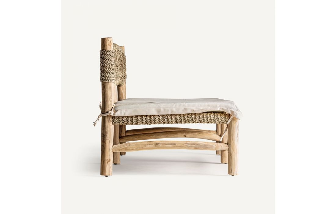 Banco com estrutura em madeira de teca e estofo em tecido de fibra natural.Destinatário :