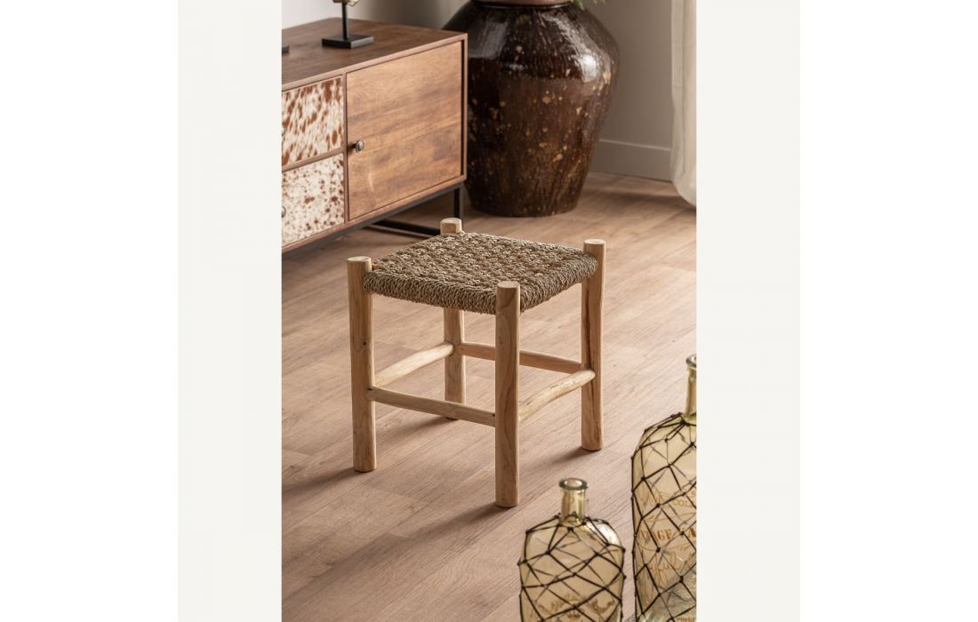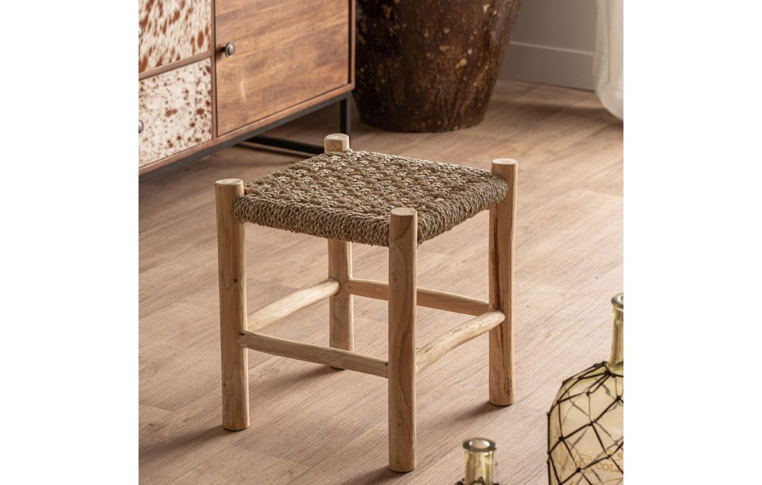Banco com estrutura em madeira de teca e estofo em tecido de fibra natural.Destinatário :