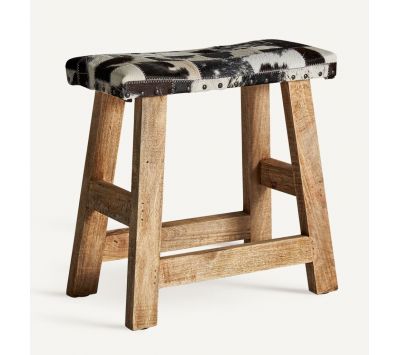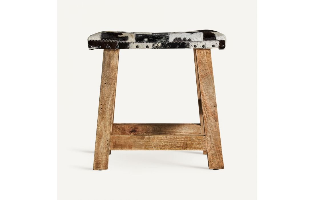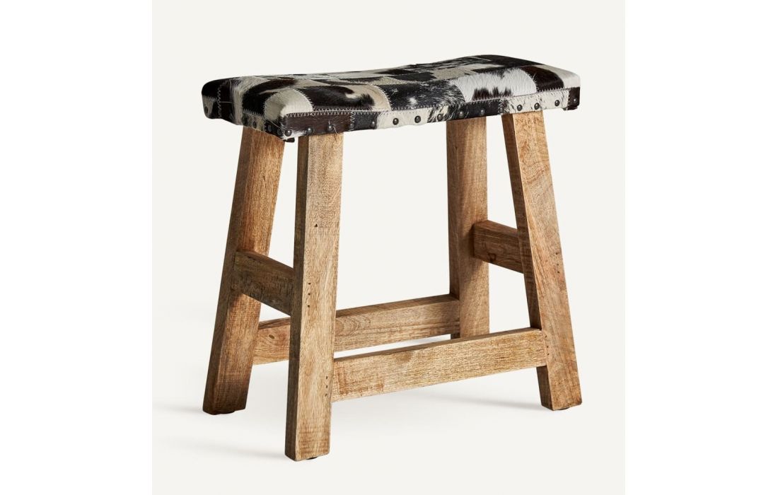 Banco estilo nórdico feito em madeira de mango e couro na cor castanhaDestinatário :