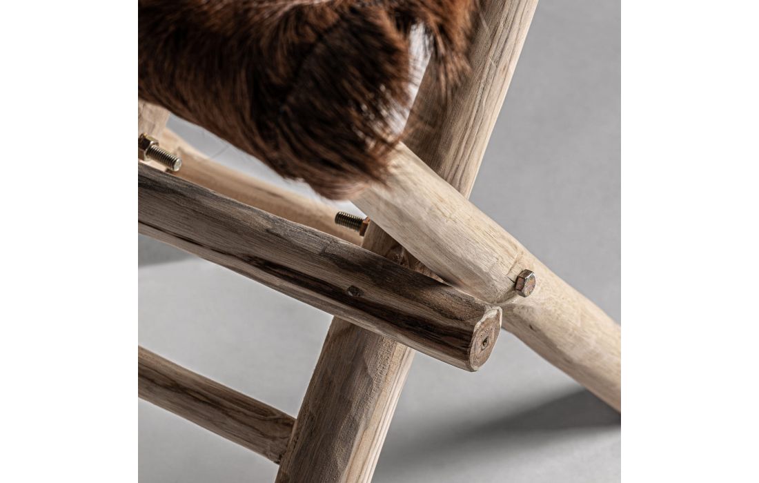 Banco estilo étnico feito em madeira de teca na cor castanha