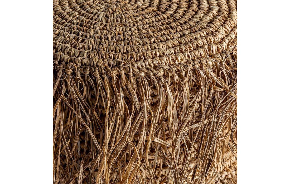 Banco estilo étnico feito em madeira de teca e fibra natural na cor castanhaDestinatário :