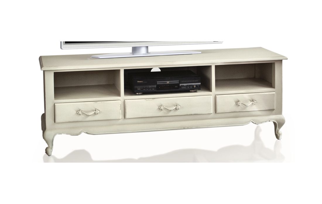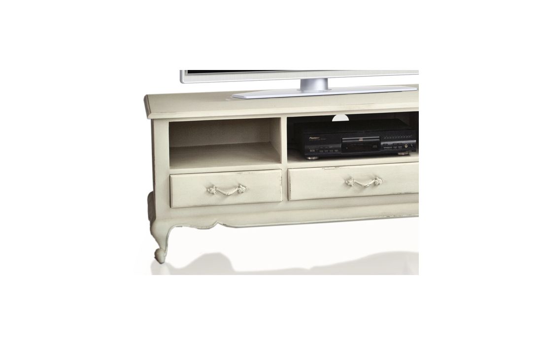 Base tv de 4 portas e 2 gavetas , fabricado em ferro com estrutura preta , parte frontal branca com promenores dourados . Prazo de Entrega15 a 20 dias Dimensões em cmL 180 P 40 A 55