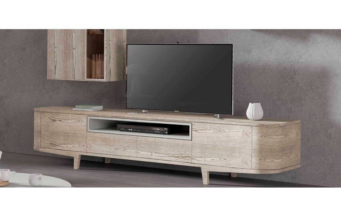 Base Tv c/ 2 Portas e 2 Gavetas em Abertura "Tic-Tac".