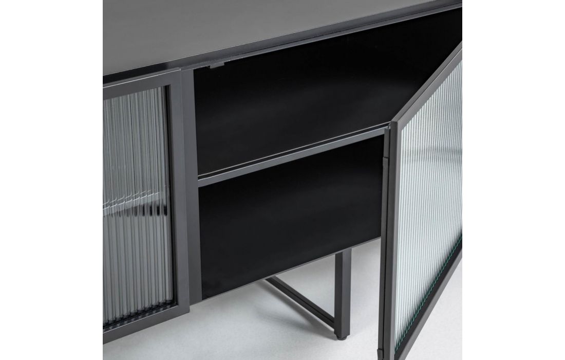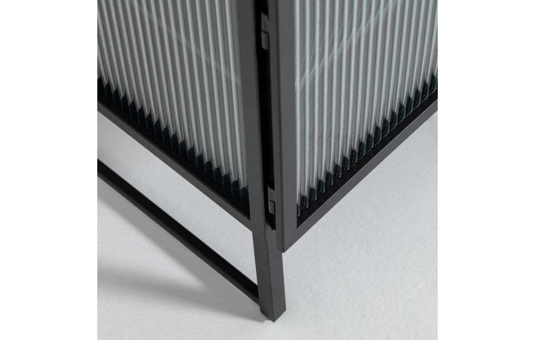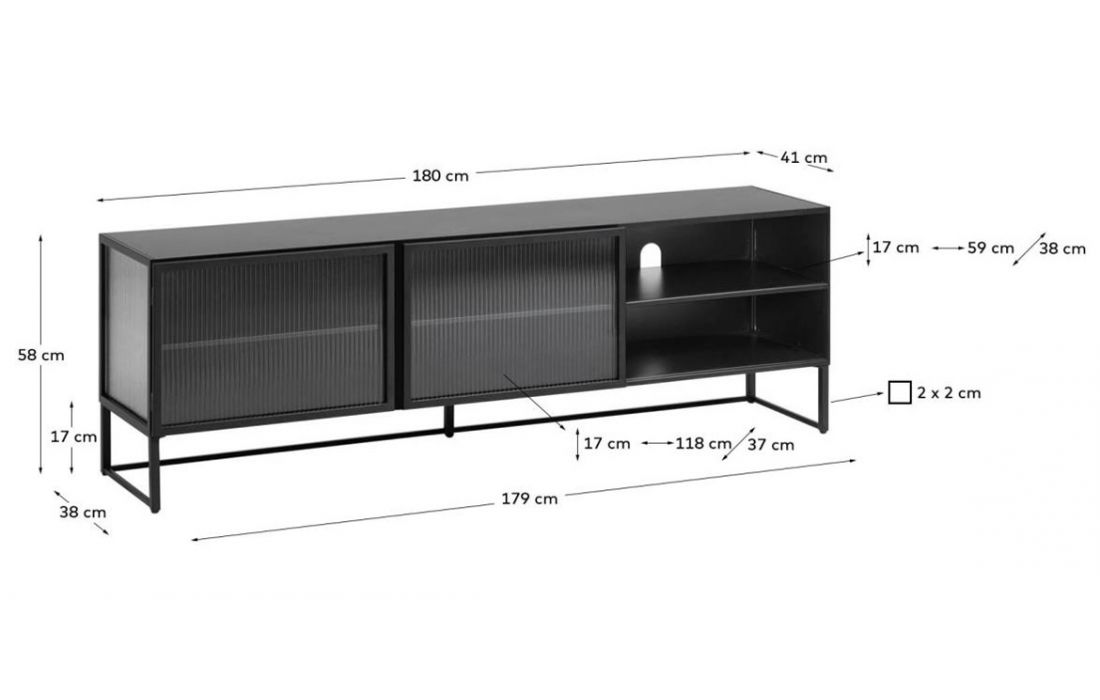 Especificações do Produto Material: Metal / Vidro Acabamento: Preto Não fazemos qualquer alteração ao produto Manutenção e Limpeza Limpar com um pano seco Para tirar manchas deve usar um pano húmido e de seguida passar um pano seco Legenda de medidas (L) Largura (P) Profundidade(A) Altura