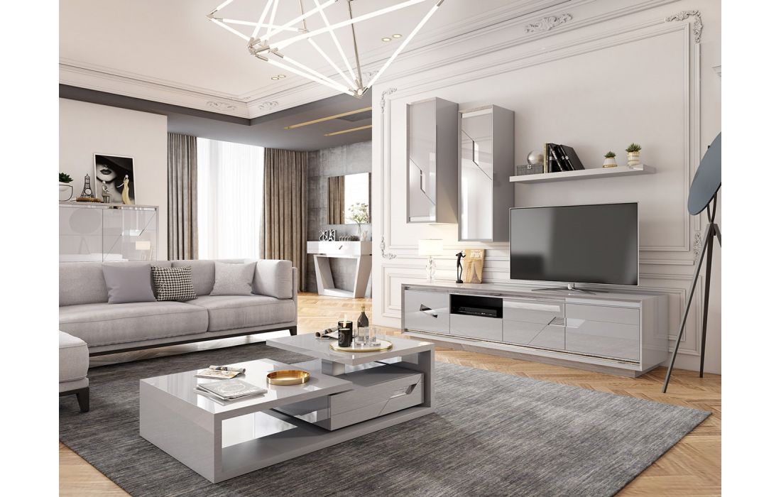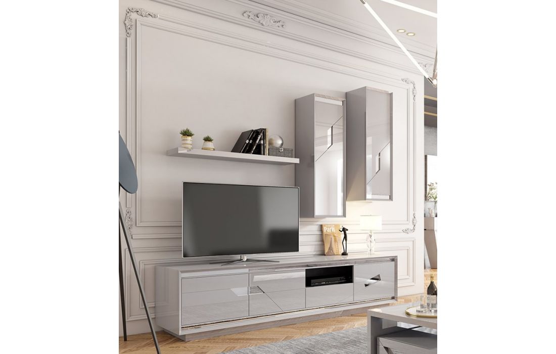Acabamento igual á imagem: Lacado branco mate com pormenores em espelho dourado.