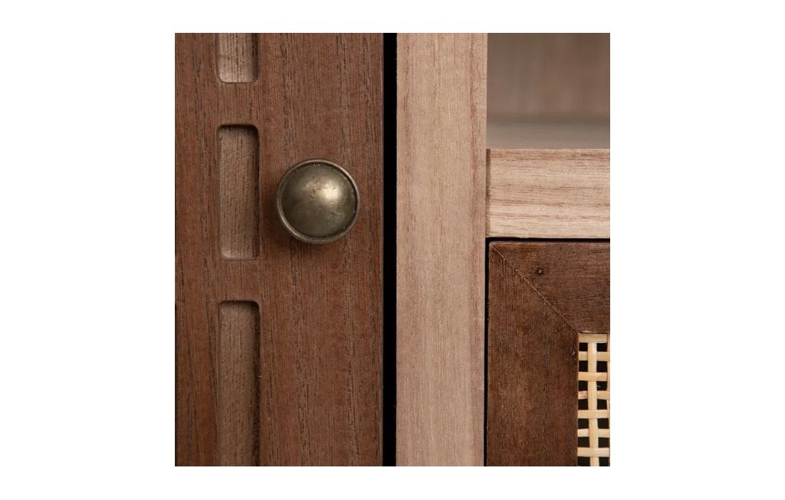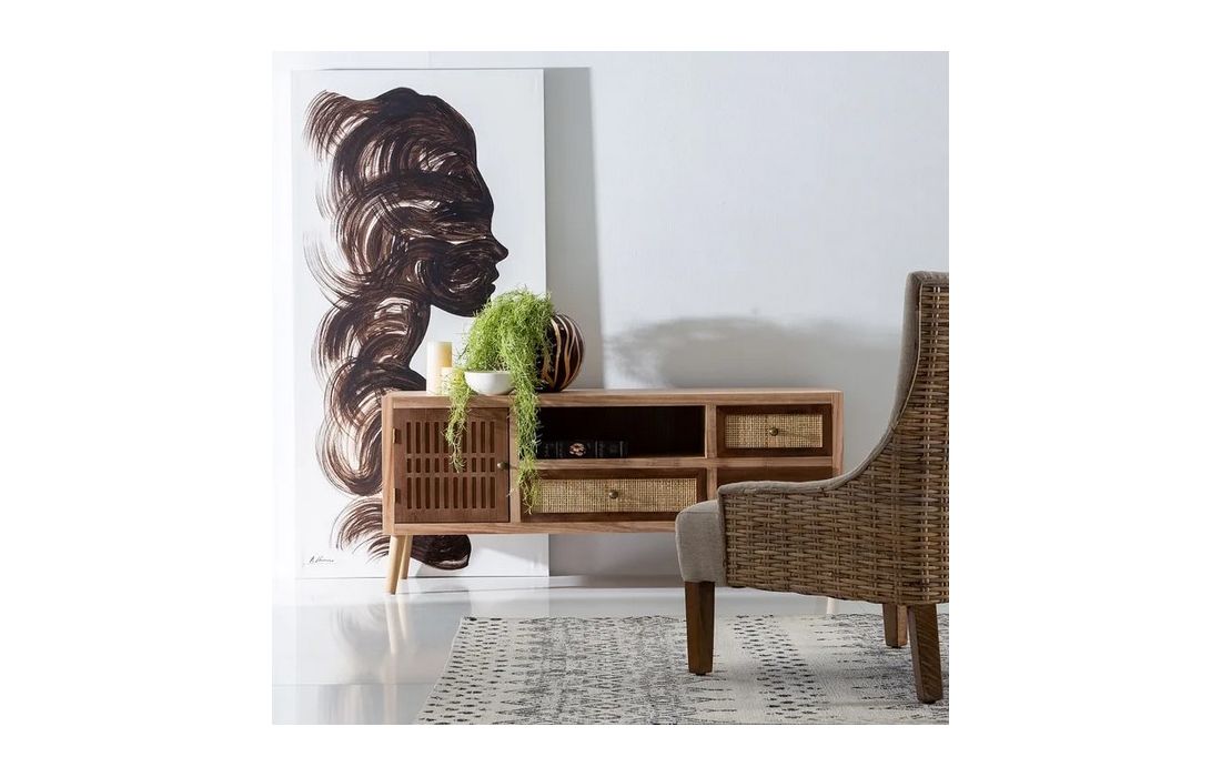 Base de TV com uma porta e 3 gavetas em madeira de pinho, rattan e paulownia, na cor creme e natural.Destinatário :